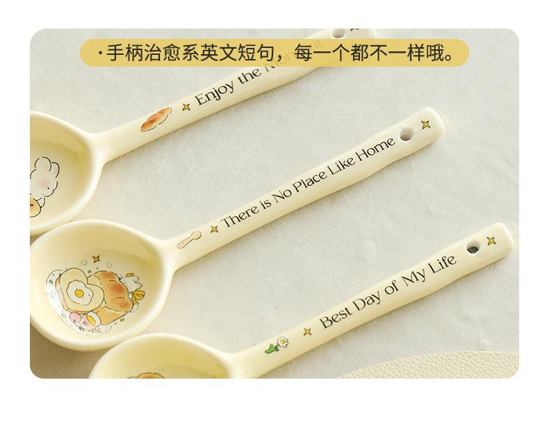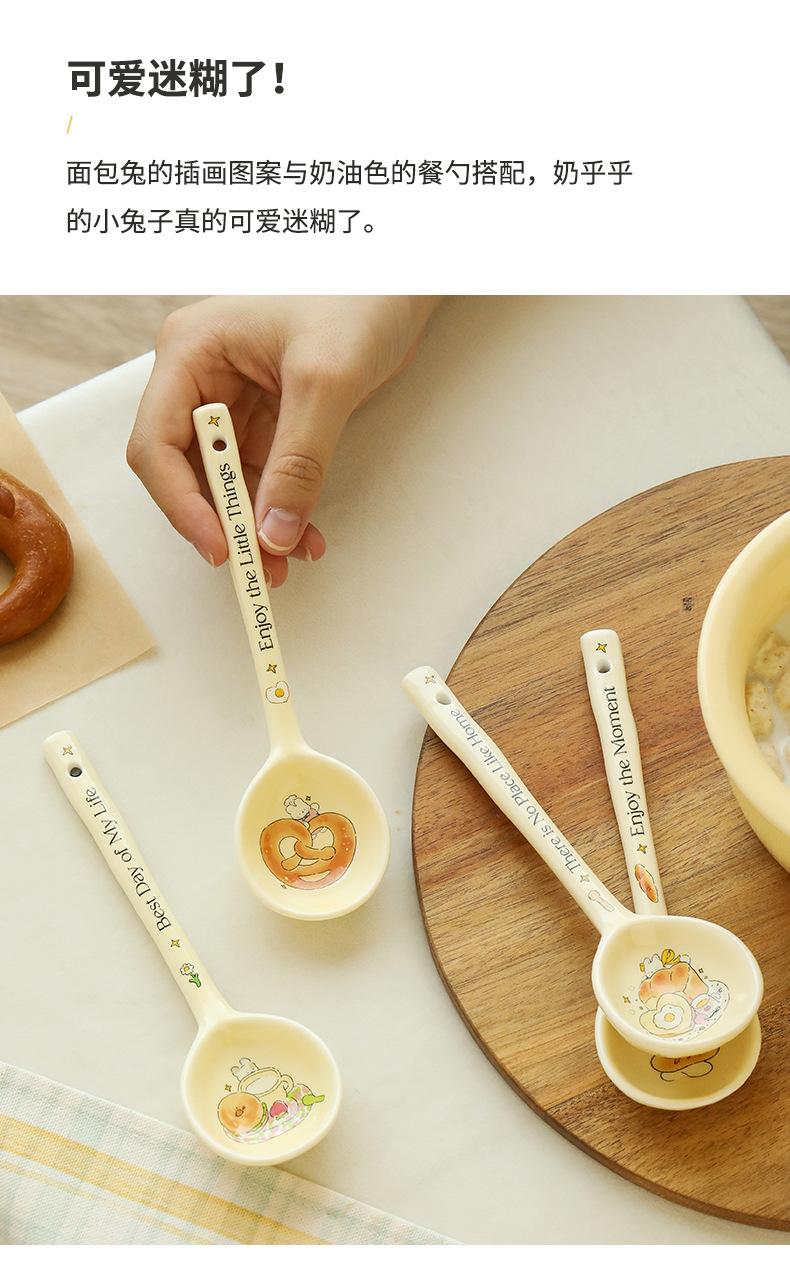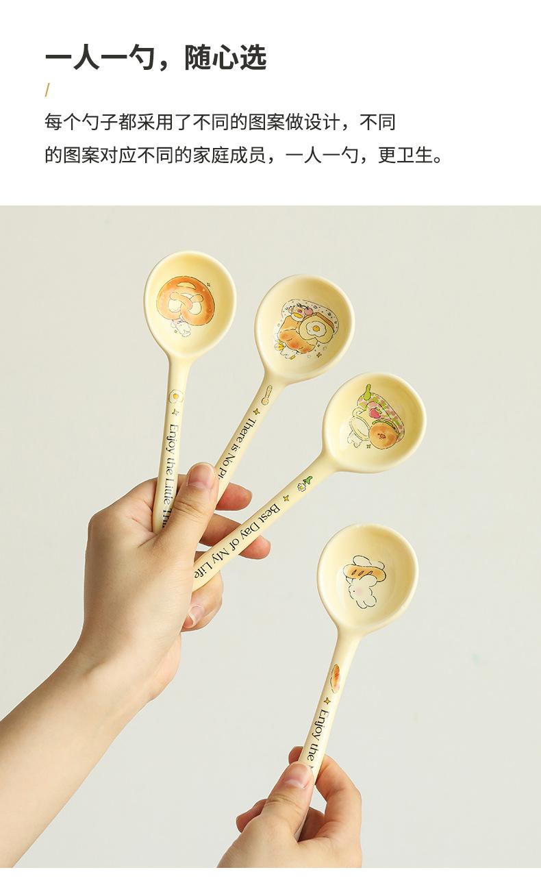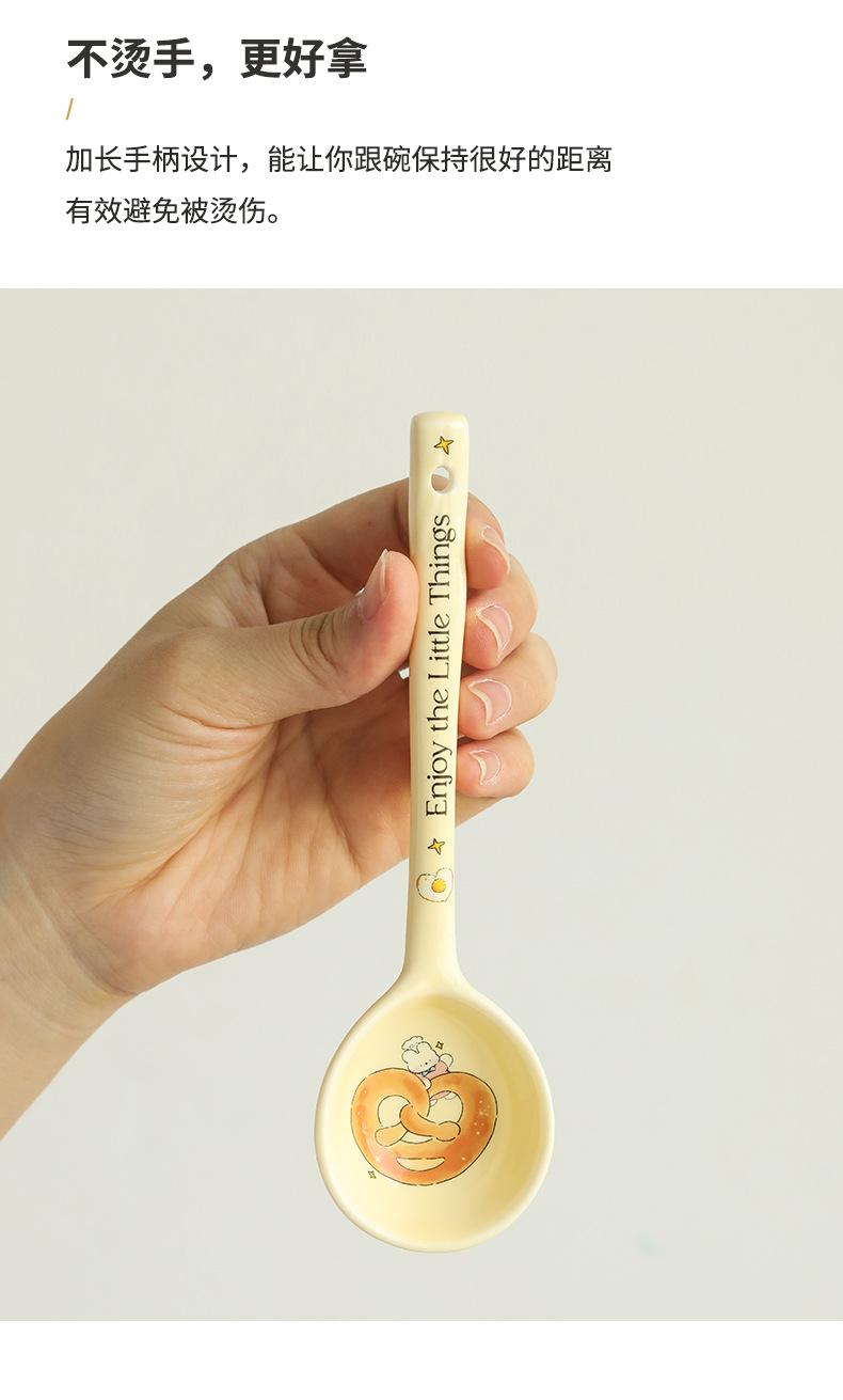 Cuchara de cerámica para el hogar, cuchara sopera de gran valor para amasar a mano con mango largo, cuchara sopera creativa y bonita para gachas.
