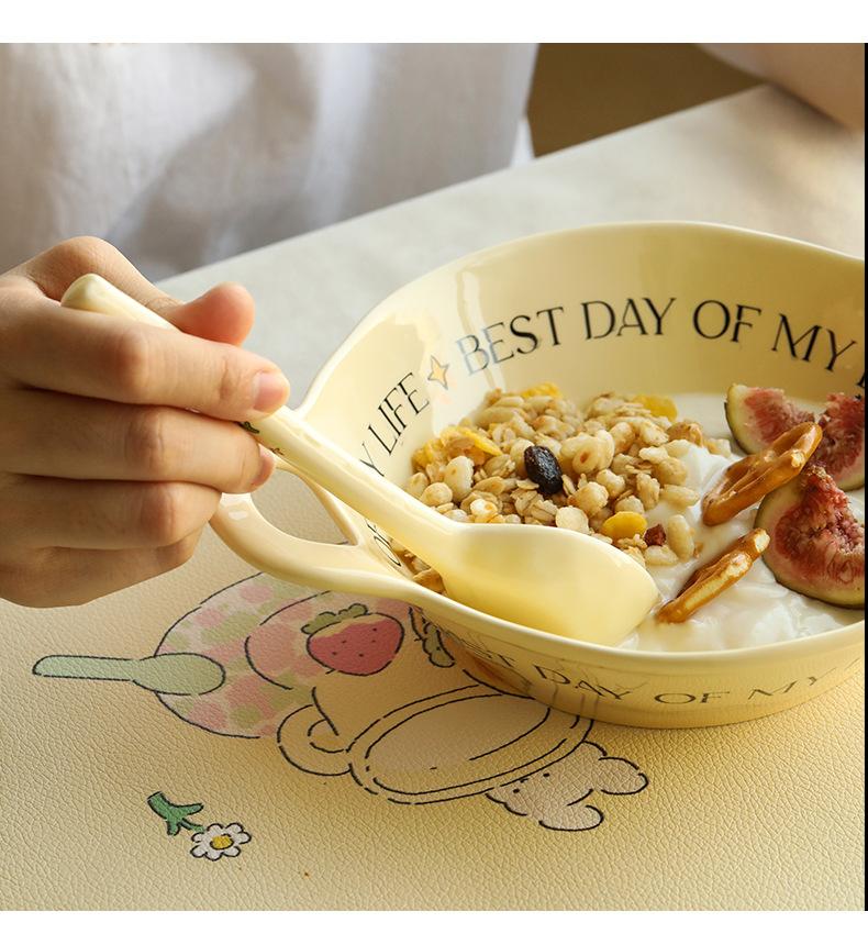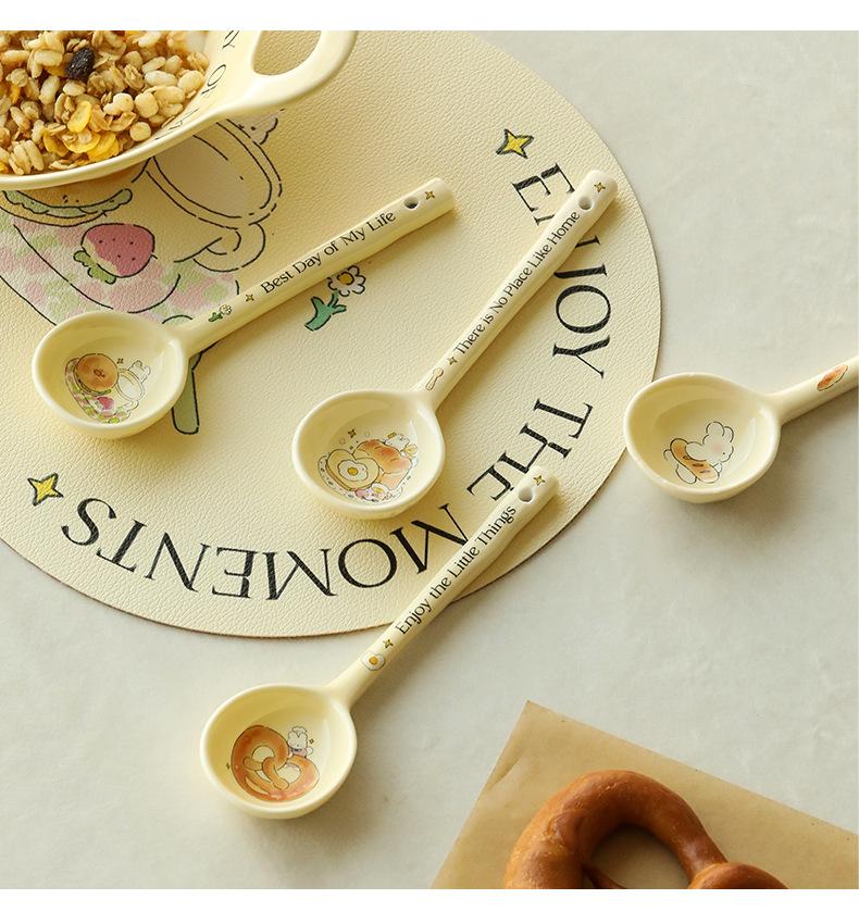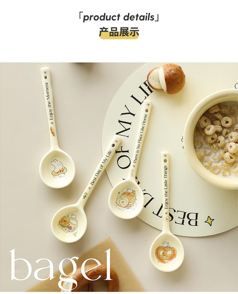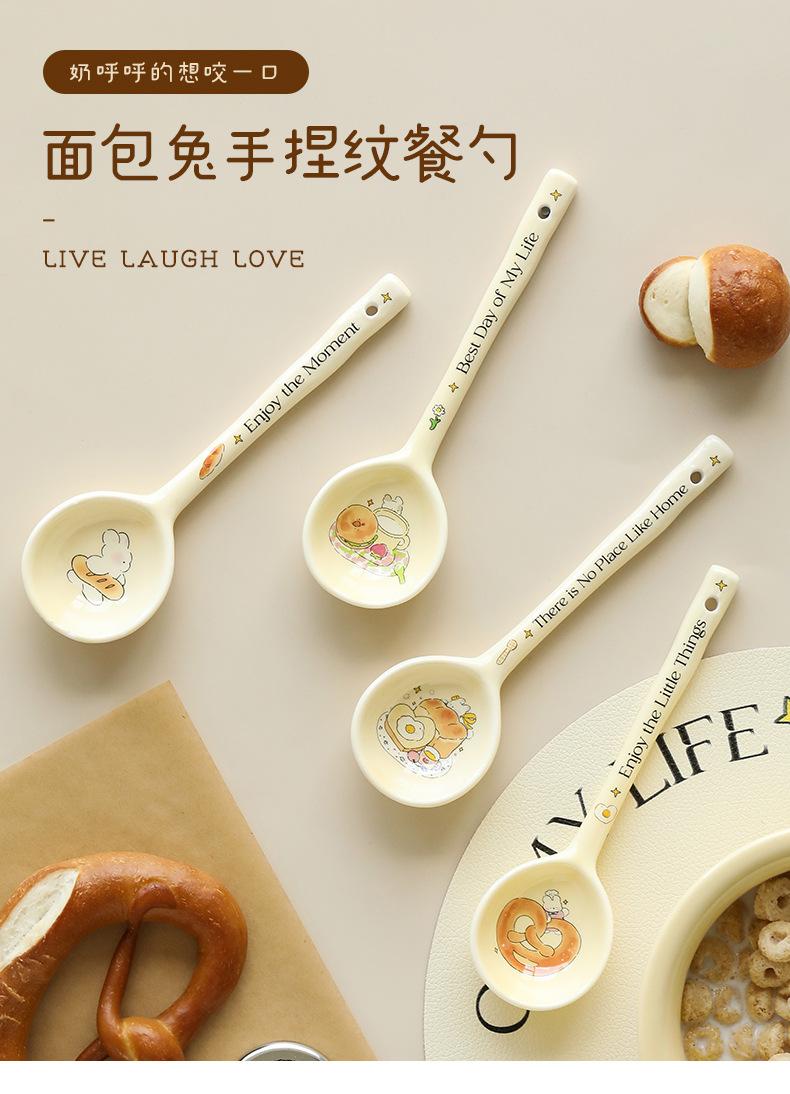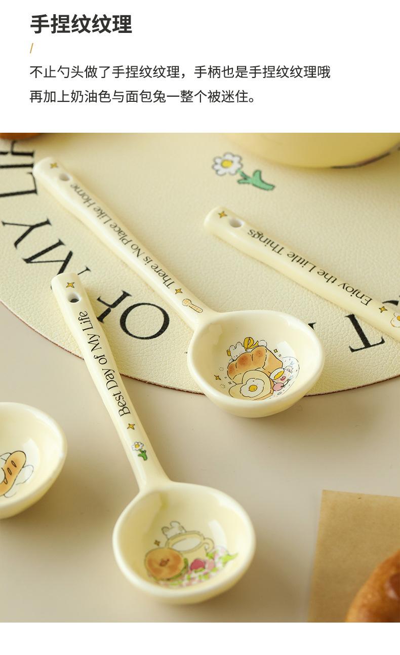 Cuchara de cerámica para el hogar, cuchara sopera de gran valor para amasar a mano con mango largo, cuchara sopera creativa y bonita para gachas.