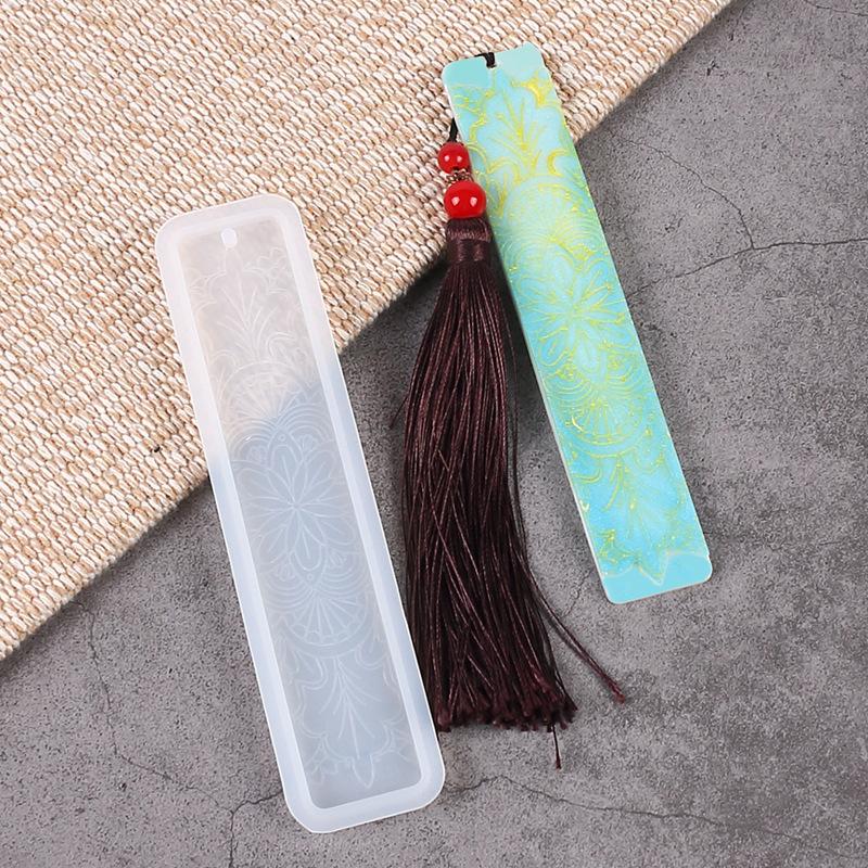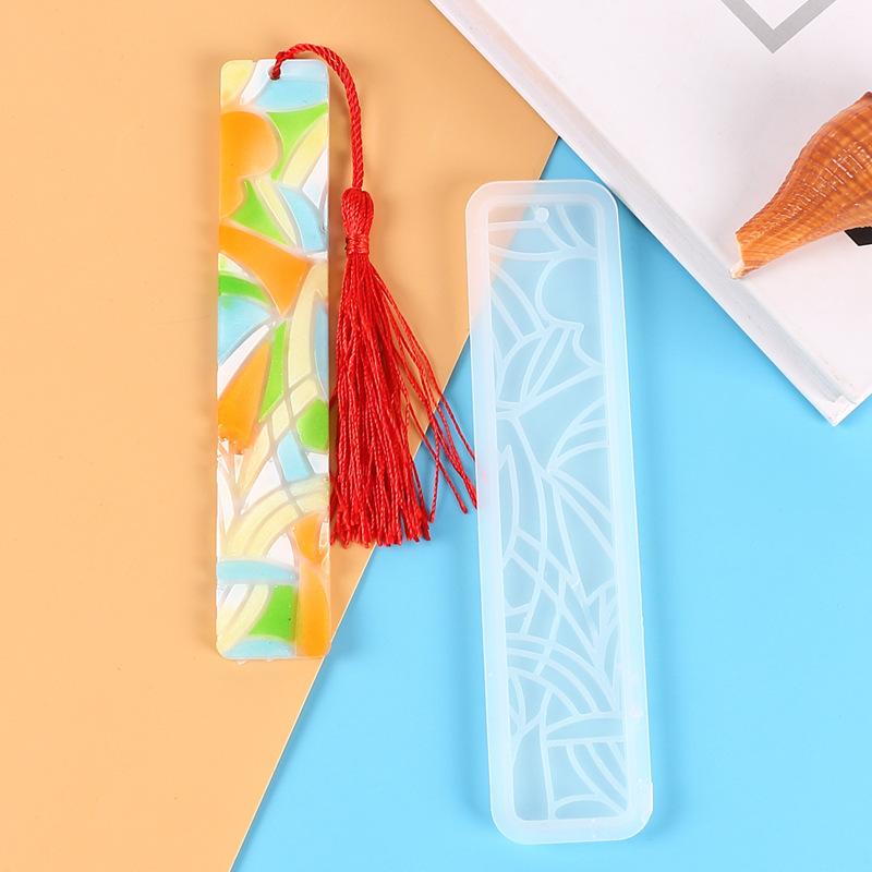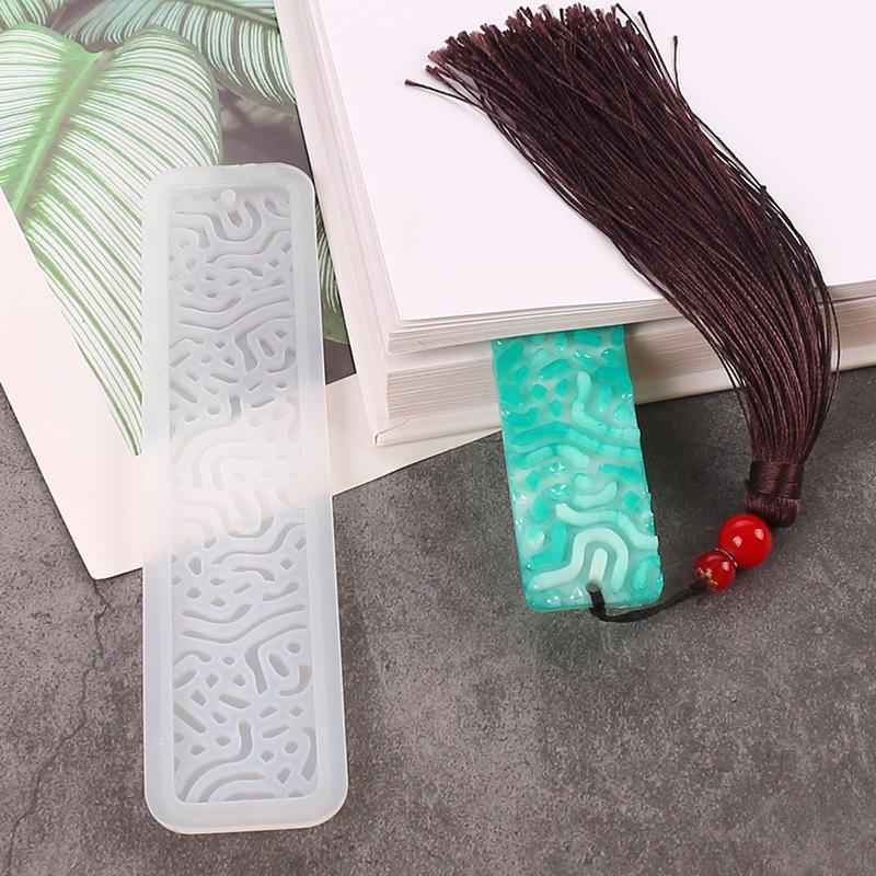 Molde para marcapáginas de resina con forma de gota de cristal, hecho a mano, con varios patrones, rectangular, de silicona