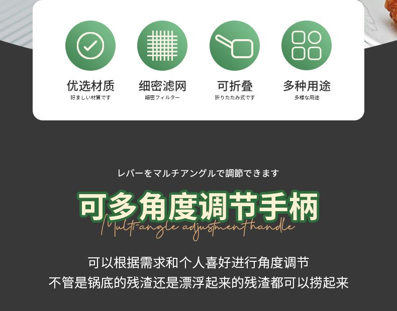 Cuchara japonesa de acero inoxidable 304 para cocina doméstica, colador con mango plegable y filtro espesado para aceite frito