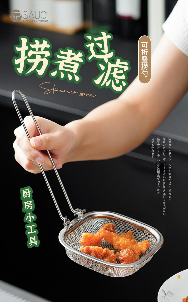 Compra Cuchara japonesa de acero inoxidable 304 para cocina doméstica, colador con mango plegable y filtro espesado para aceite frito al por mayor en Joom.pro