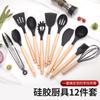 Nuevo juego de utensilios de cocina de silicona de grado alimenticio con mango de madera de haya con mármol creativo, patrón de nube, cuchara de cocina de silicona, espátula