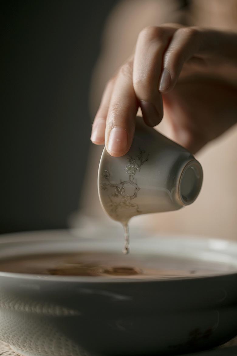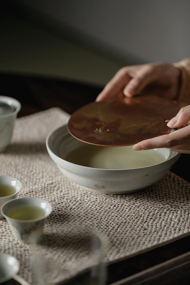 Crepúsculo Cang Zhai antiguo Qingfan wenxinghe olla almacenamiento de agua polillas cobre separado neumático de té seco juego de té kung fu bandeja de té