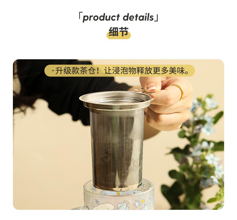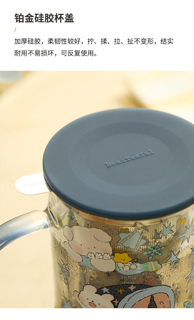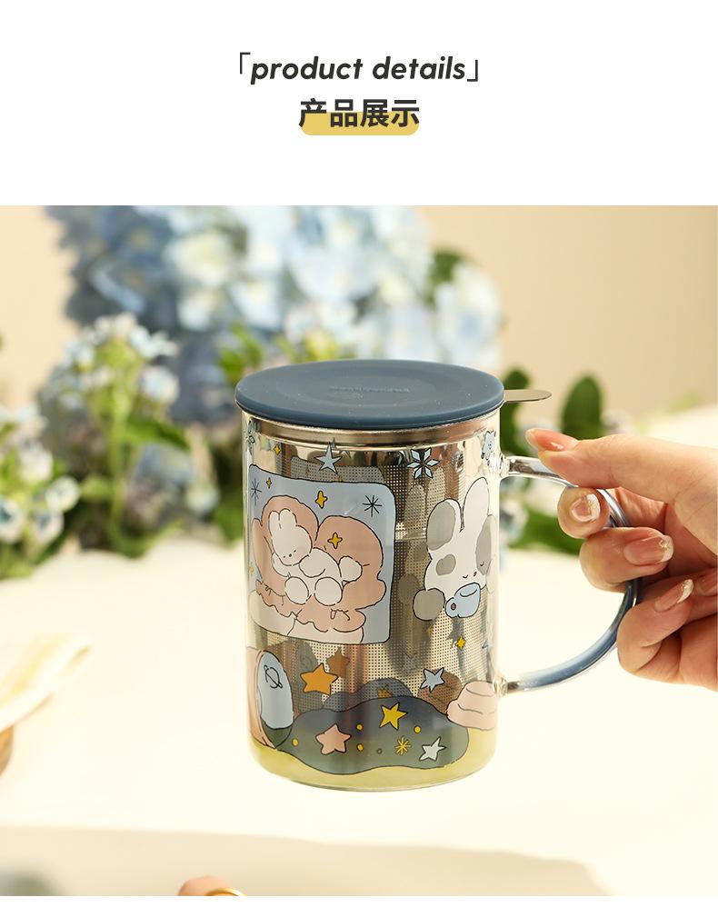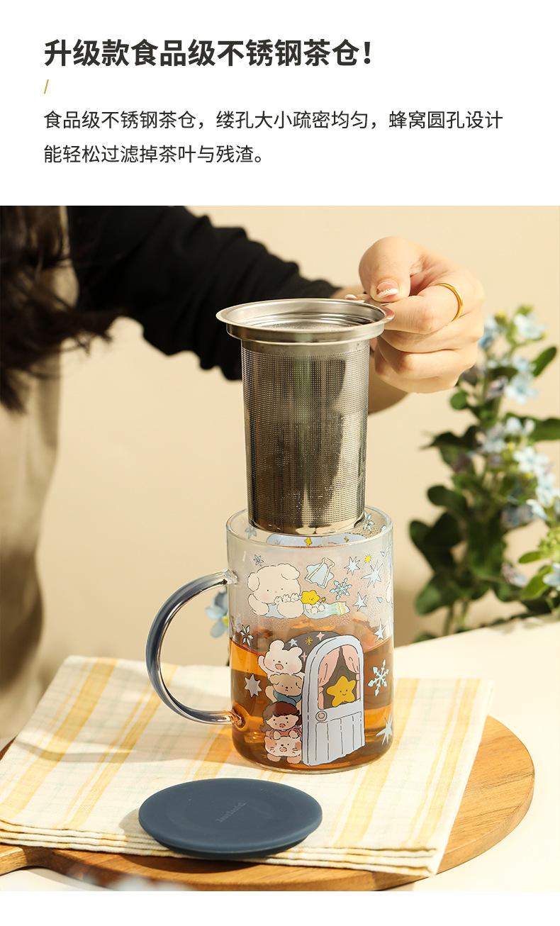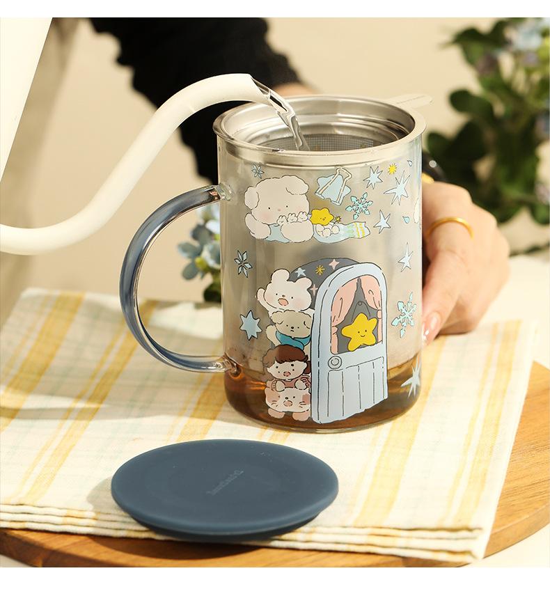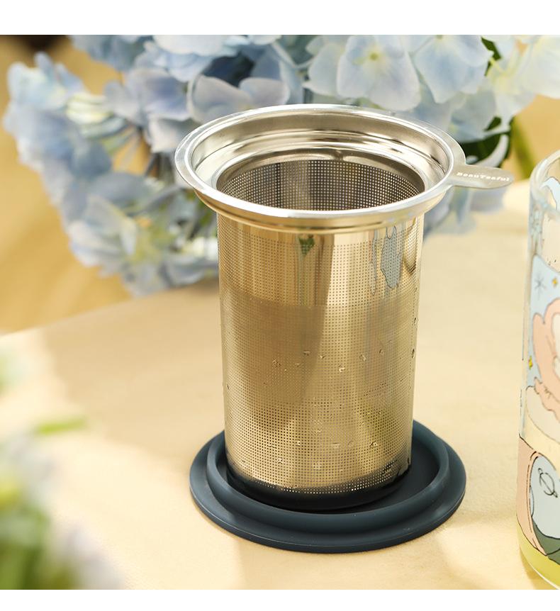 Taza de té con filtro de vidrio, taza separada, taza para beber con tapa, taza con asa, taza de té de oficina