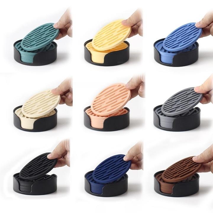 Nombre: Posavasos de drenaje 6 almohadillas + 1 bandeja de plástico