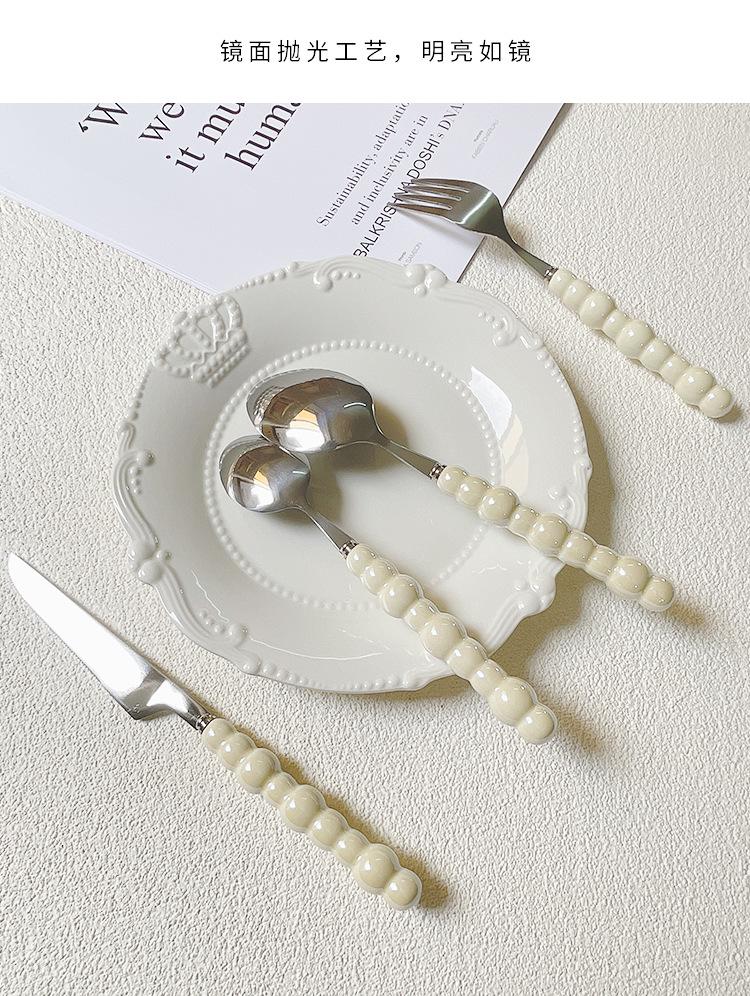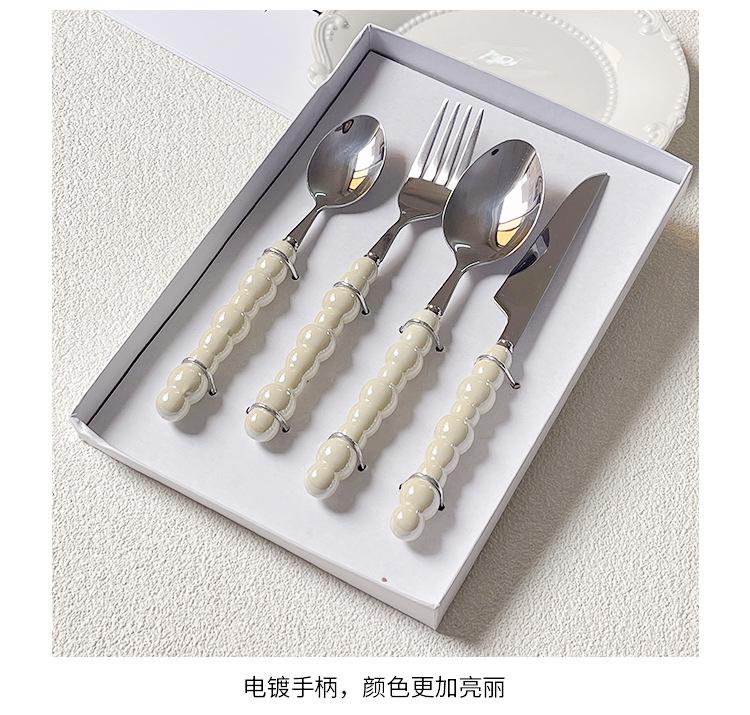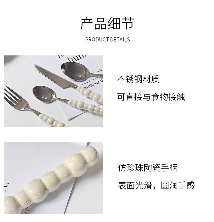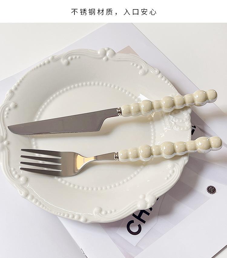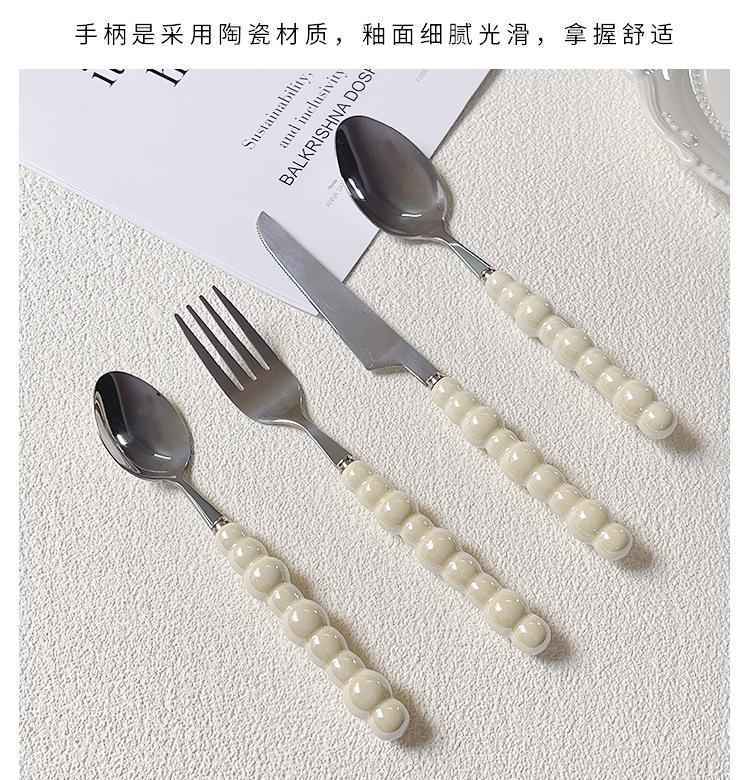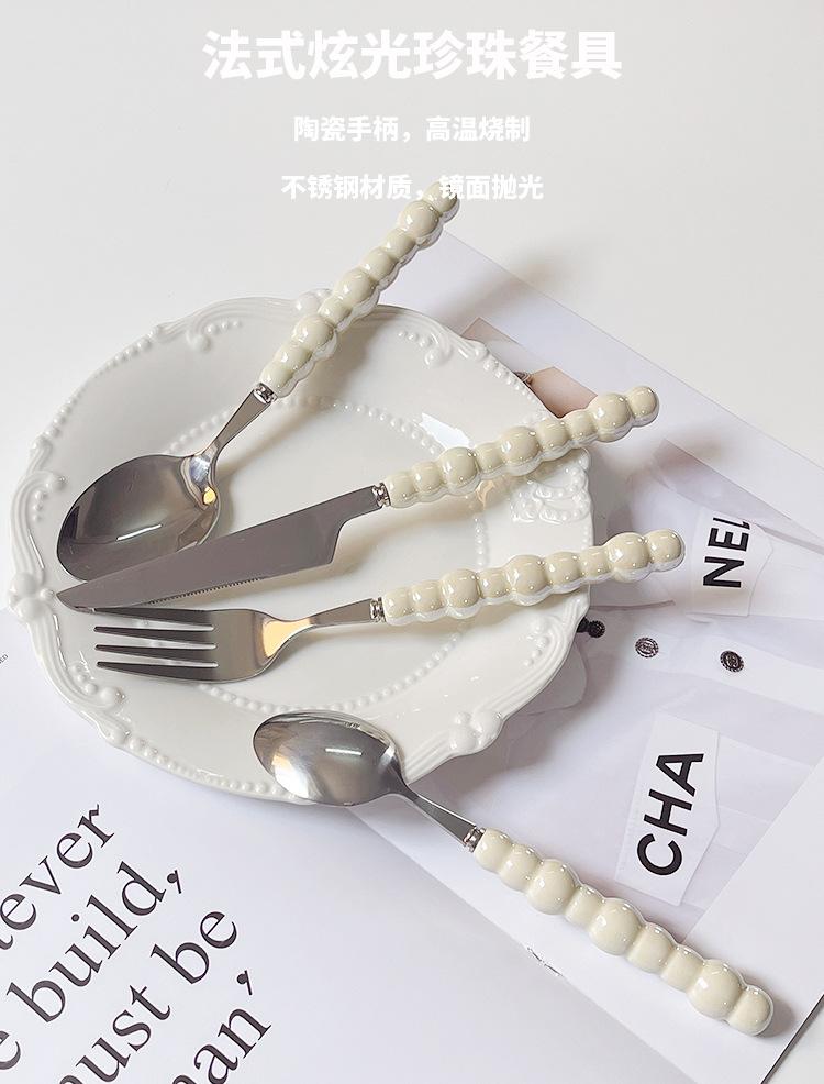 Juego de cuchillo y tenedor con mango de cerámica perlada de lujo ligero para carne, juego de cuchillo y tenedor de comida occidental, cuchara y tenedor de postre de acero inoxidable para el hogar