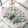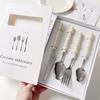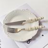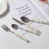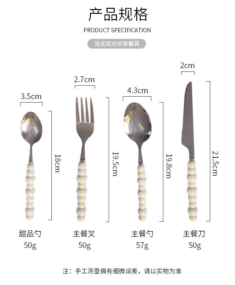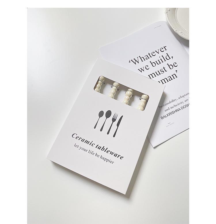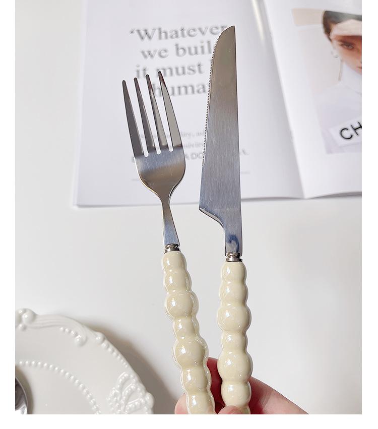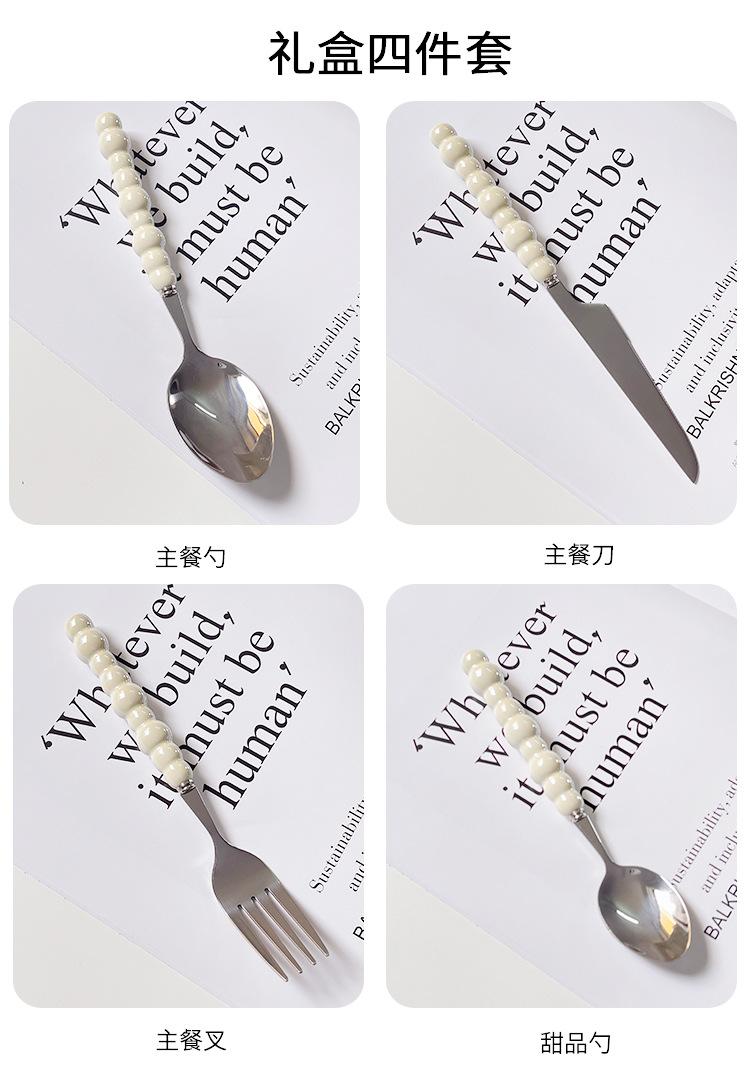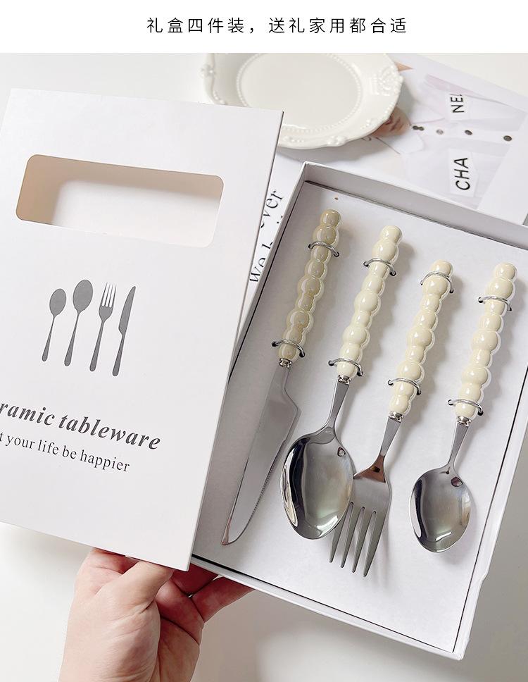 Juego de cuchillo y tenedor con mango de cerámica perlada de lujo ligero para carne, juego de cuchillo y tenedor de comida occidental, cuchara y tenedor de postre de acero inoxidable para el hogar