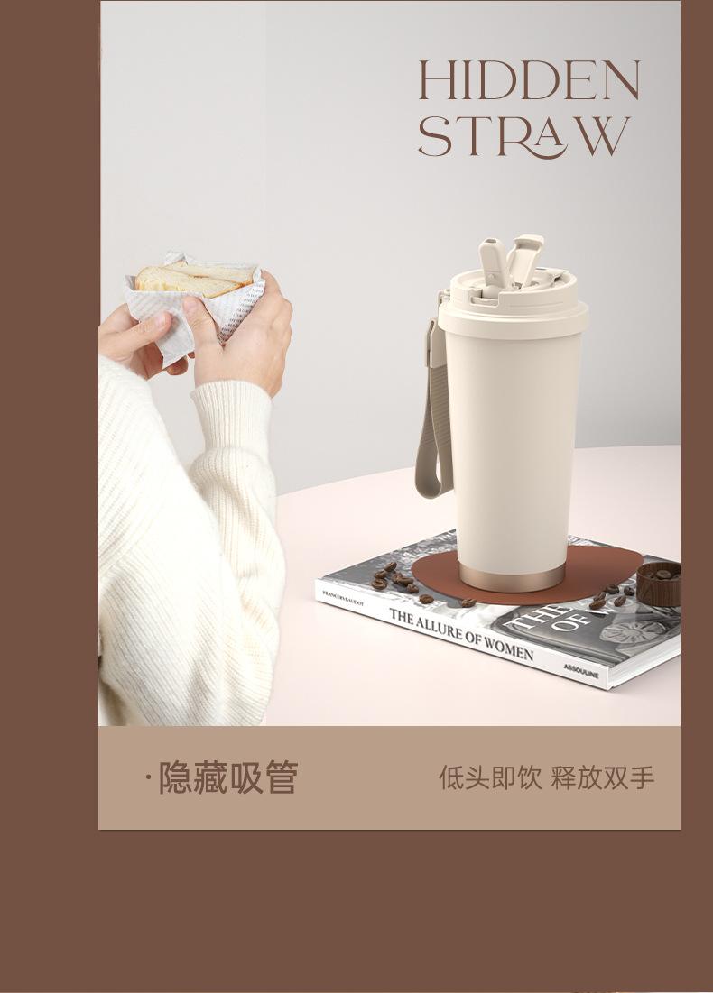Taza térmica de cerámica de acero inoxidable 316, taza de café de doble bebida sin costuras, de alto valor de color, con pajita y letras de regalo.