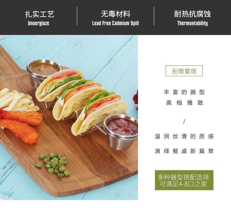Estante para tacos de restaurante occidental con taza de salsa, estante para burritos, estante para tortillas, estante creativo para pastel de camarones y comida
