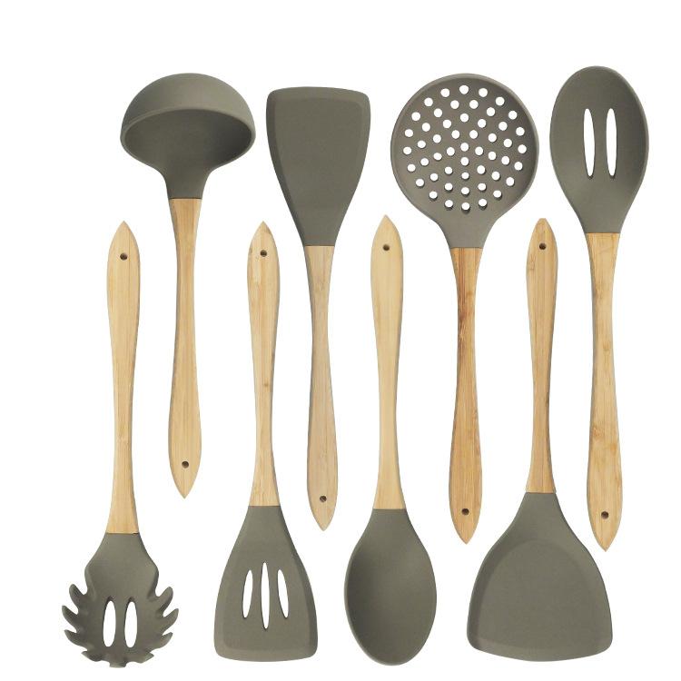 Nombre del producto: Juego de utensilios de cocina de silicona y nailon con mango de bambú de 8 piezas