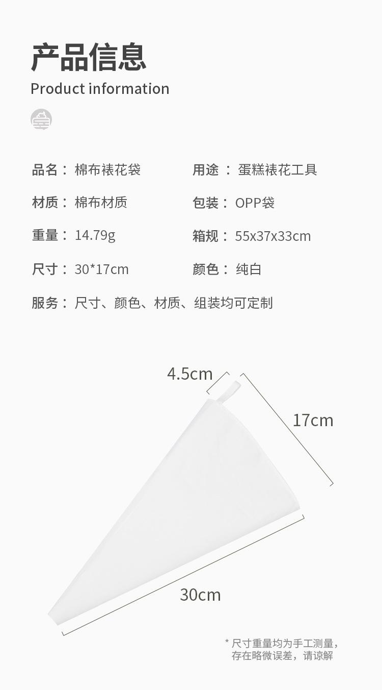 Bolsa de algodón blanco puro para decorar, reutilizable, para crema de leche, de 20 cm y 30 cm, juego de herramientas para hornear y decorar, ideal para hacer tú mismo.