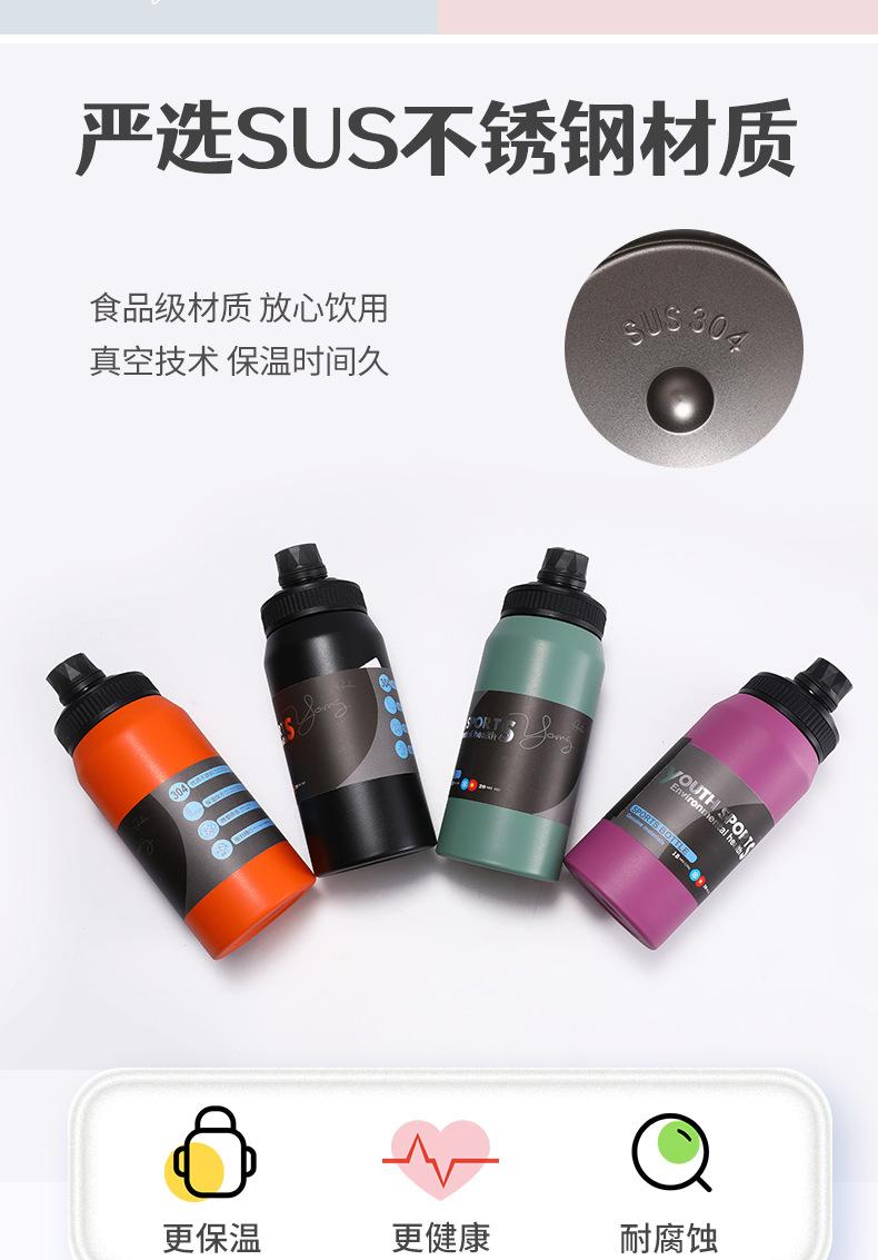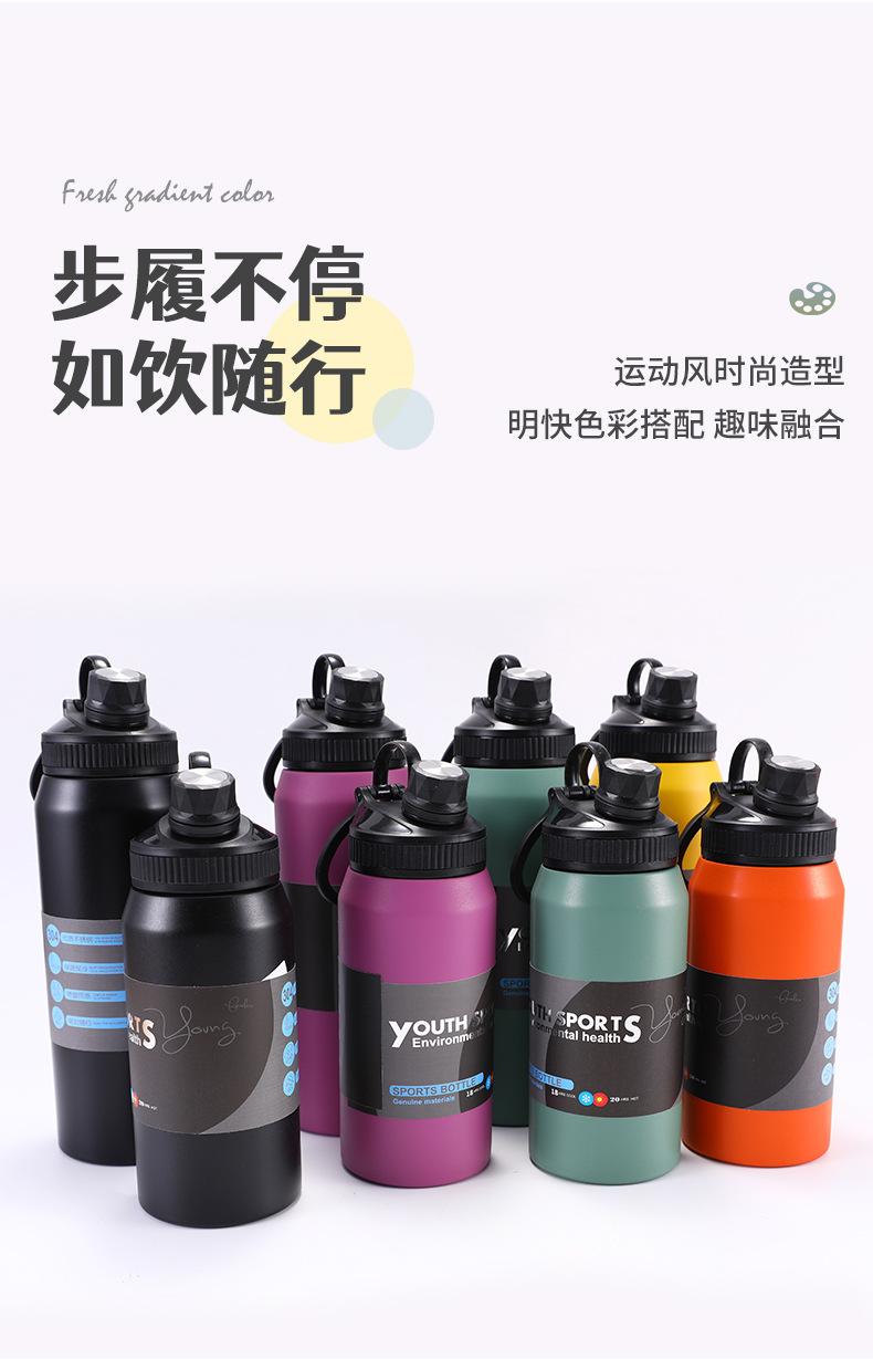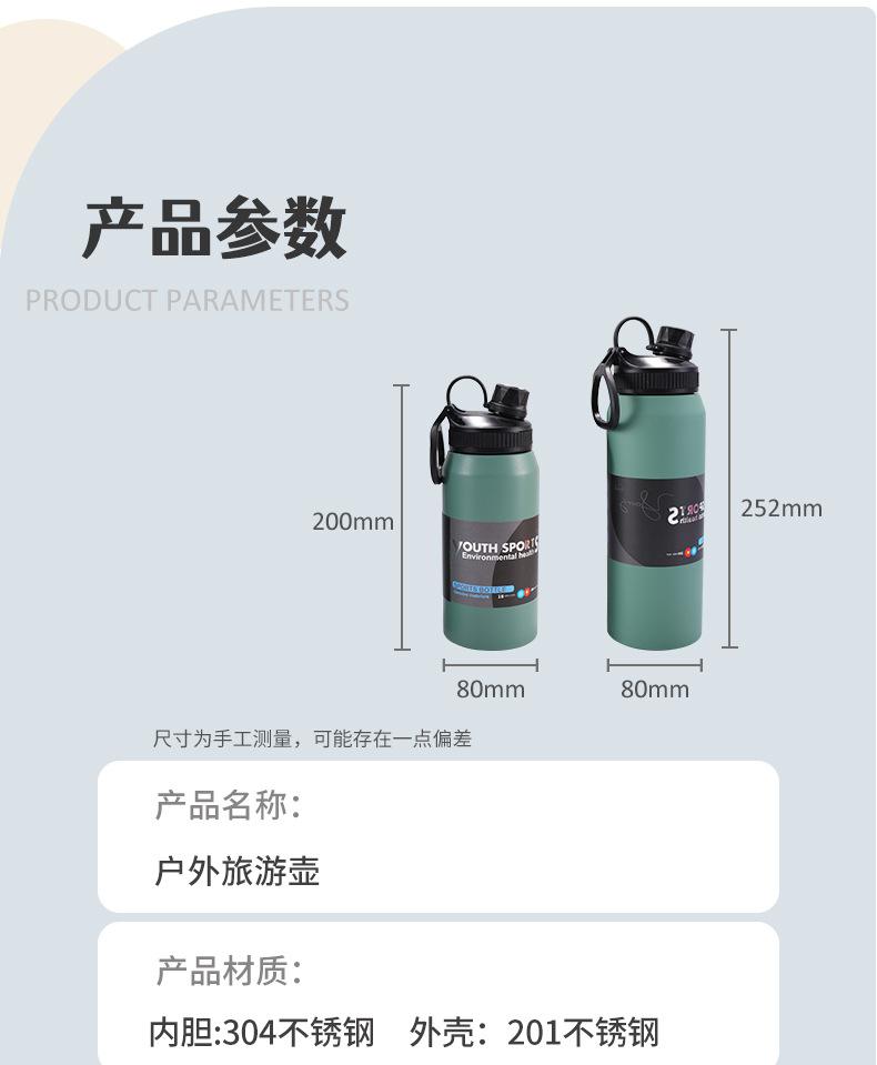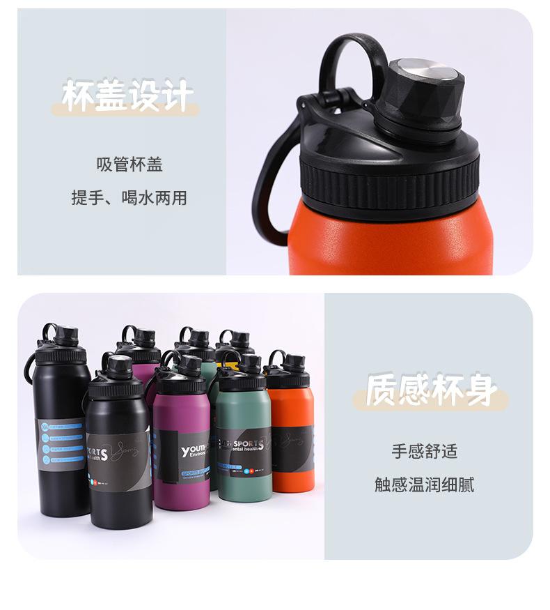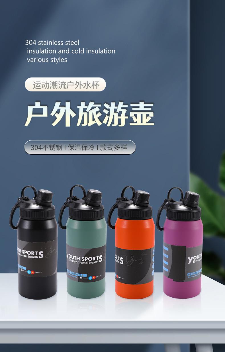 Hervidor de Viaje al Aire Libre Transfronterizo Acero Inoxidable 304 Vacío Taza Deportiva de Agua de Gran Capacidad Asa Portátil Vaso Aislado