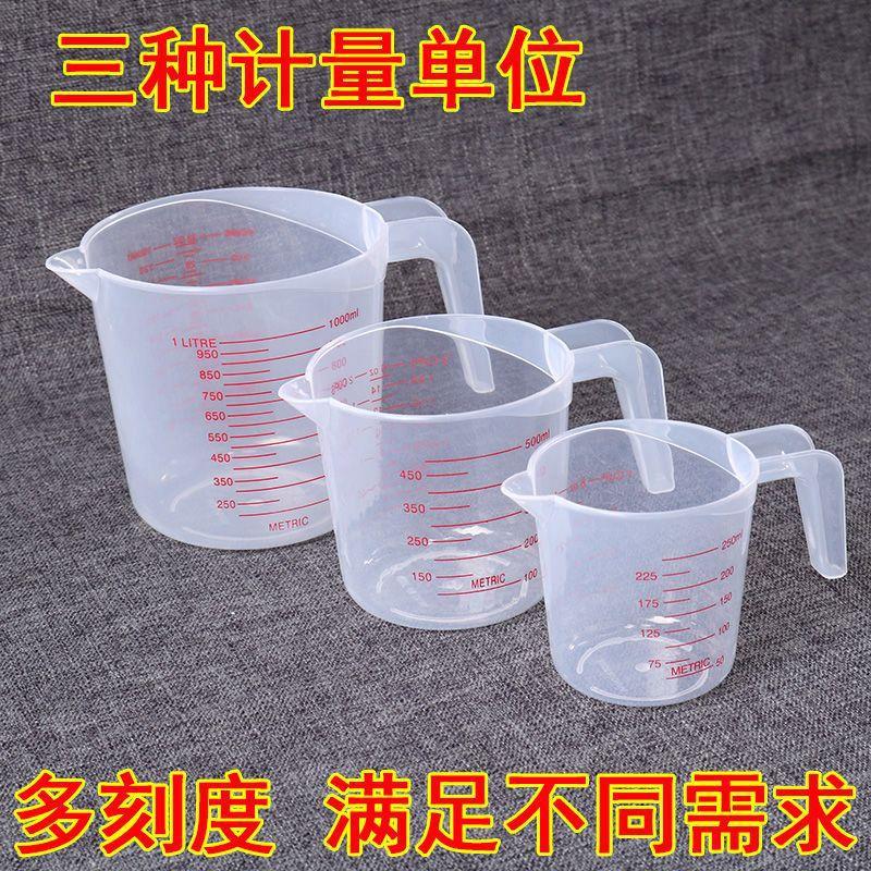 Taza medidora de plástico transparente de 250 ml con escala, taza medidora de 500 ml, herramienta de medición para repostería de cocina, cuchara medidora de 1000 ml.