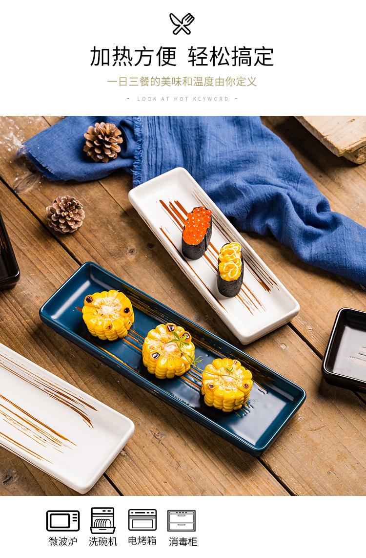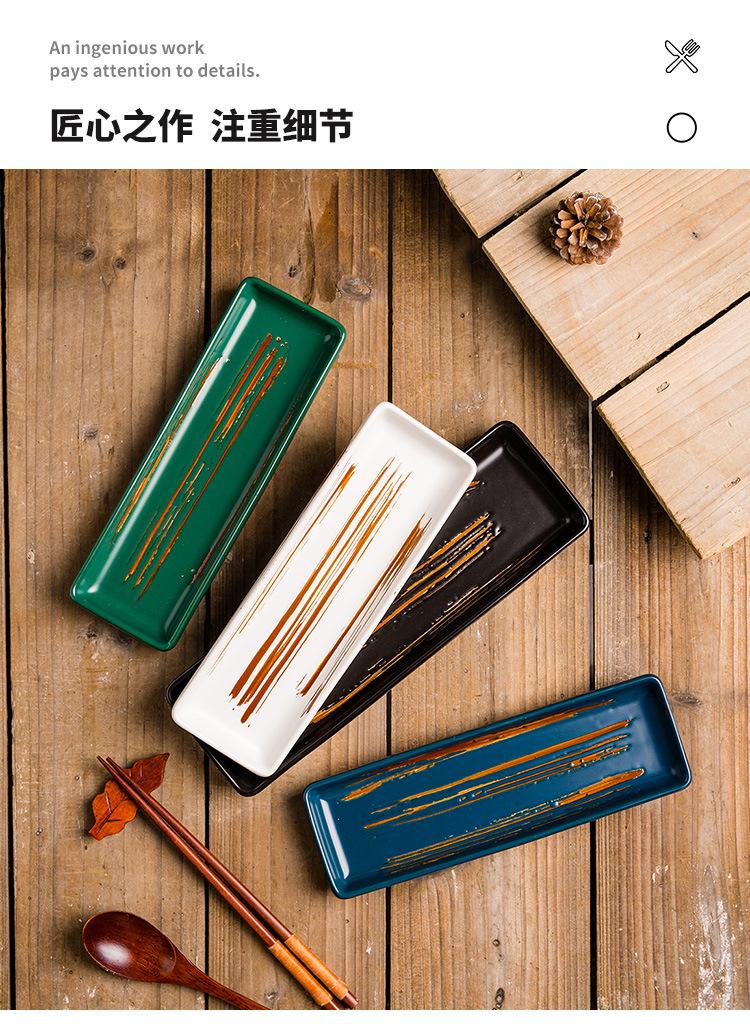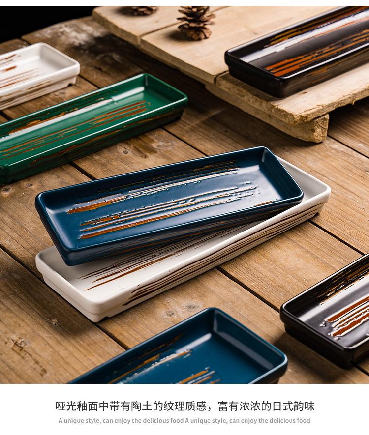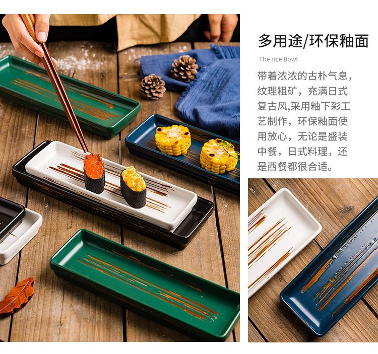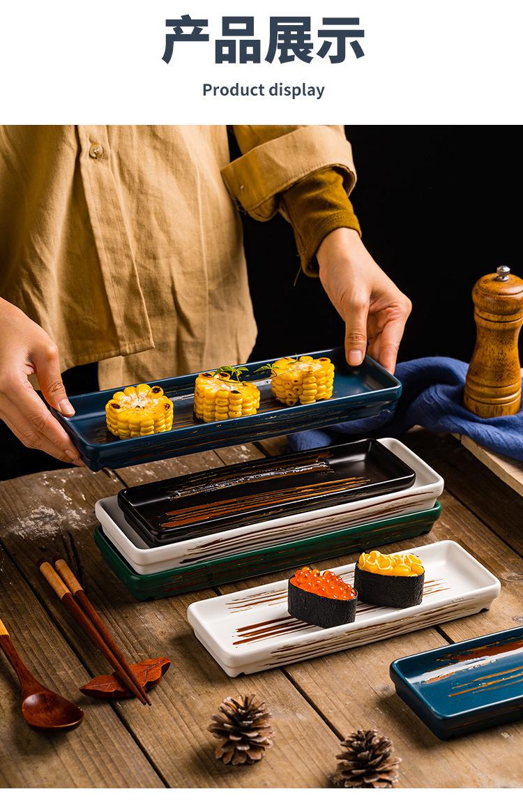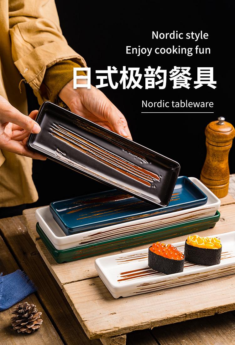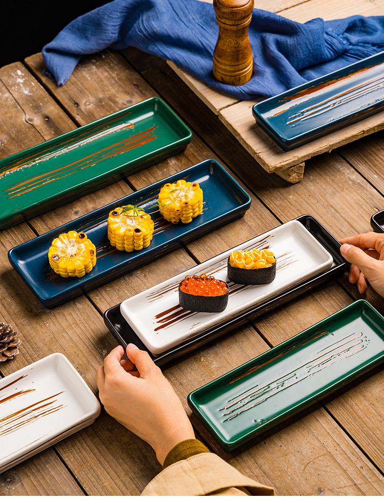 Nuevo plato de sushi creativo de estilo japonés, plato largo de sashimi de salmón, plato de postre de cerámica de restaurante occidental, plato de aperitivos