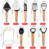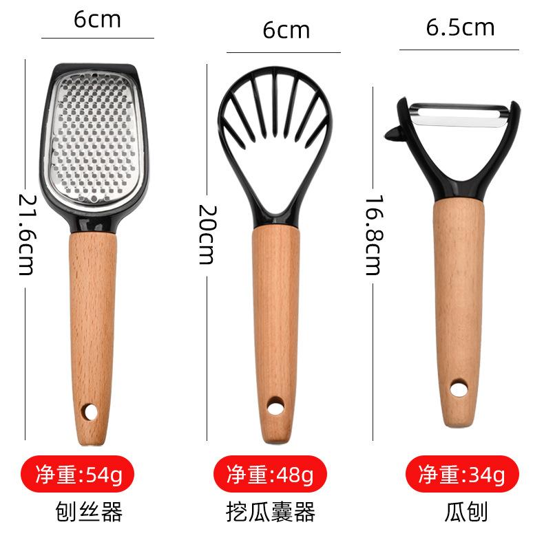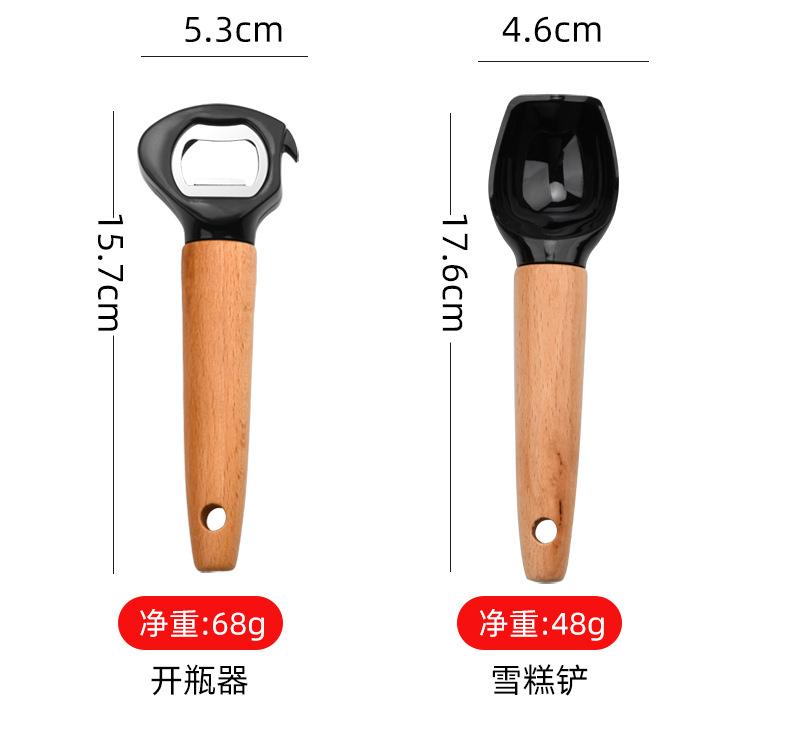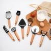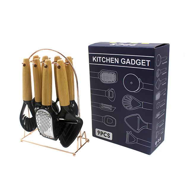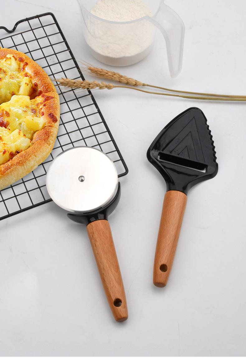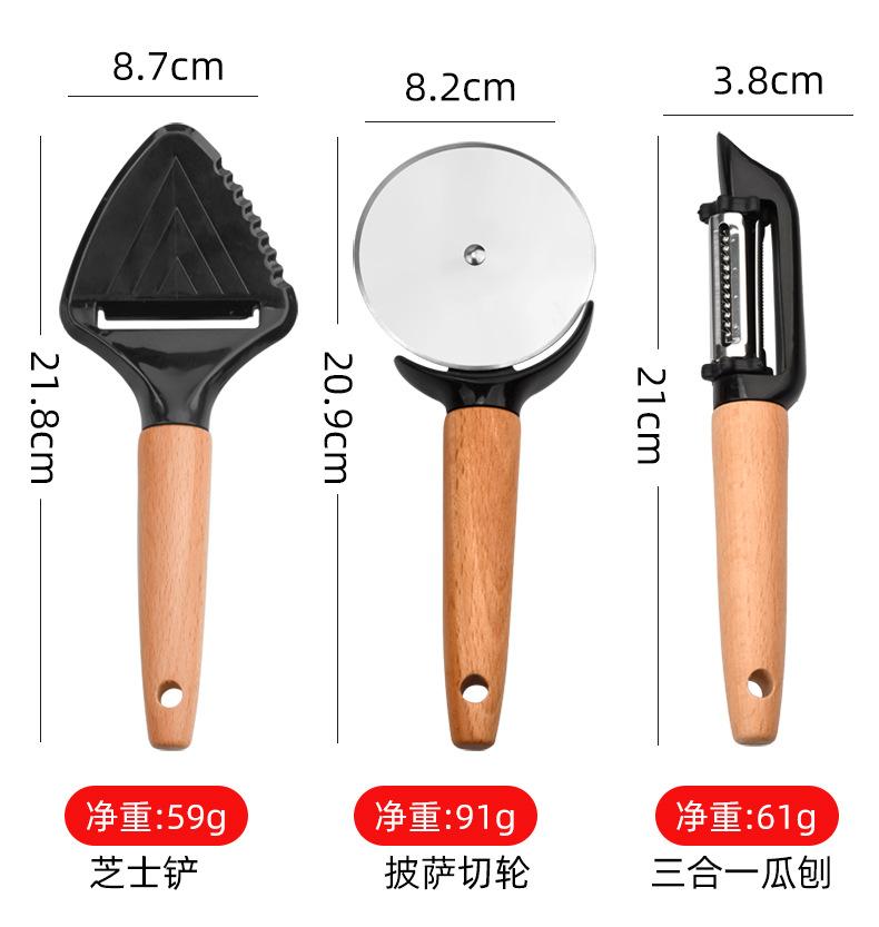 Utensilio de cocina con mango de madera pequeño utensilio de cocina juego de 9 piezas pala para queso rodillo para pizza cuchillo rallador utensilio para hornear