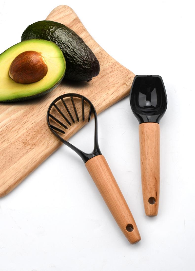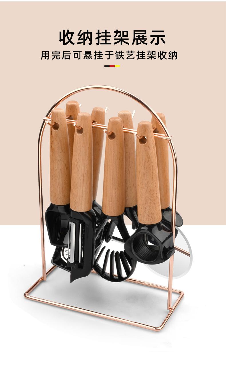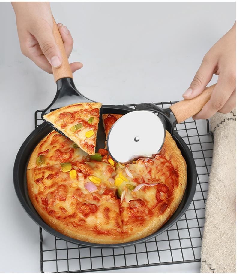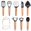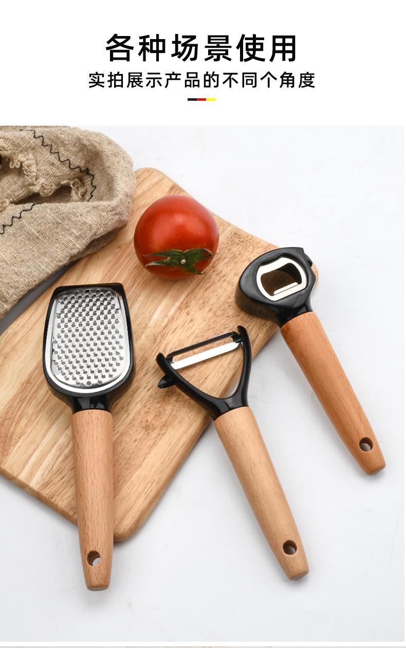 Utensilio de cocina con mango de madera pequeño utensilio de cocina juego de 9 piezas pala para queso rodillo para pizza cuchillo rallador utensilio para hornear
