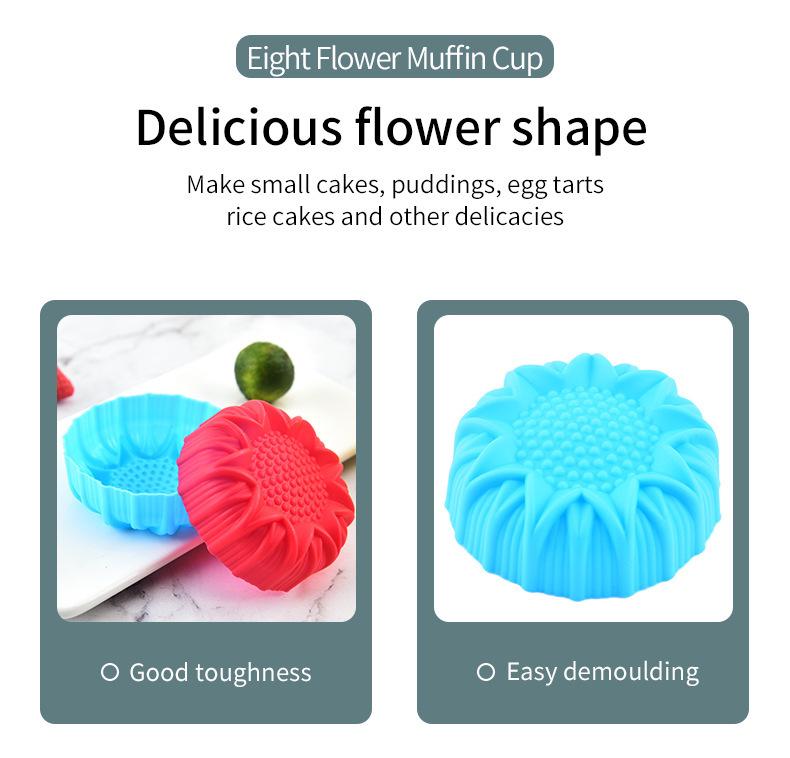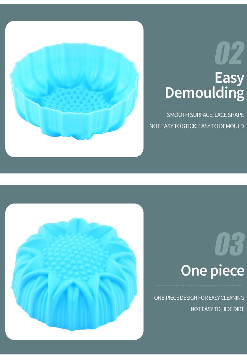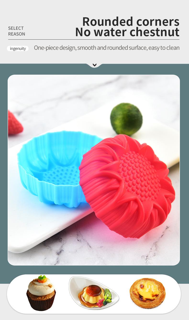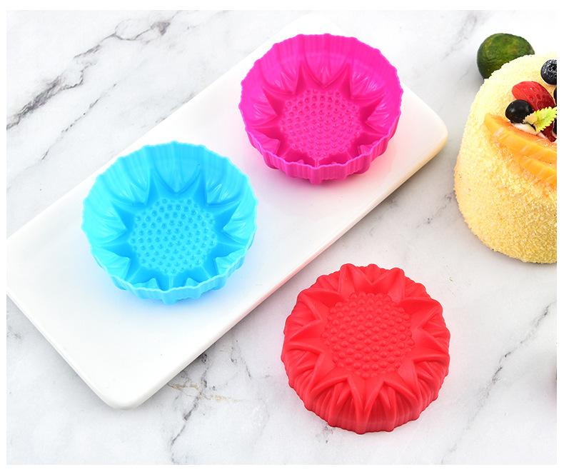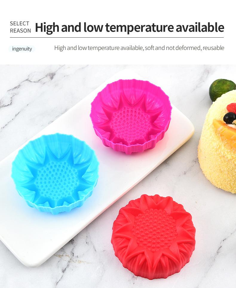 Molde de silicona para pastel con forma de crisantemo, venta al por mayor de fábrica, para hornear muffins, pudín de chocolate y pasteles