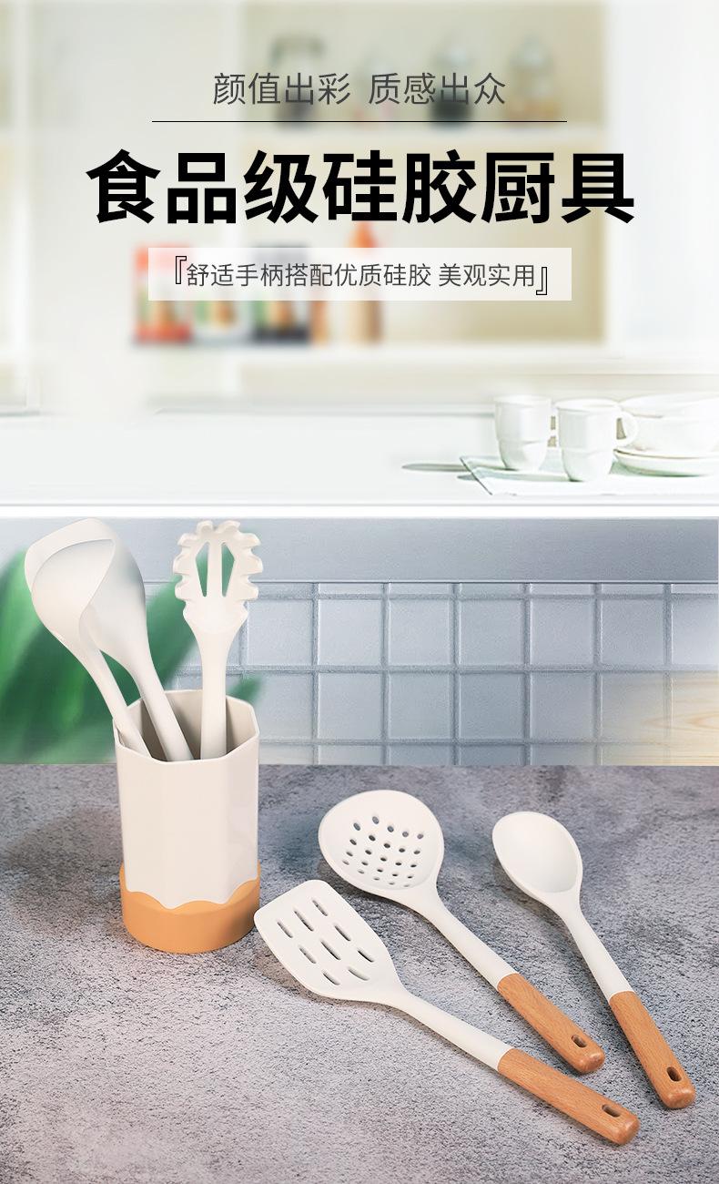 Nuevos utensilios de cocina de silicona, 7 piezas, espátula de silicona, utensilios de cocina, cuchara para sopa, garra para polvo, utensilios de cocina de silicona, traje