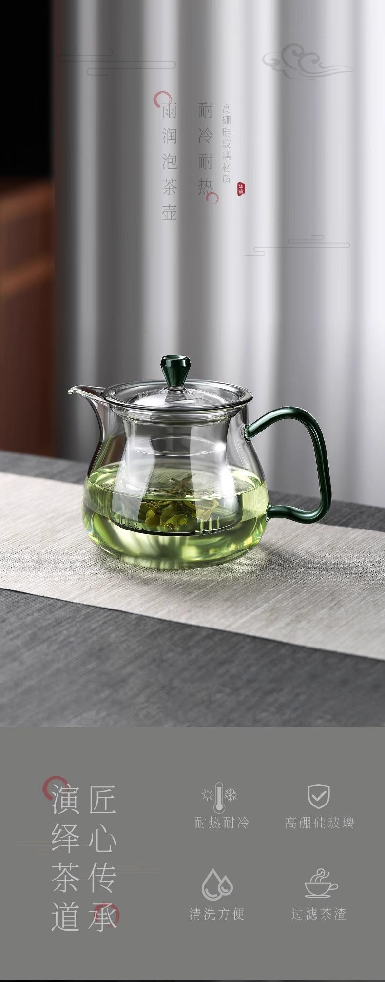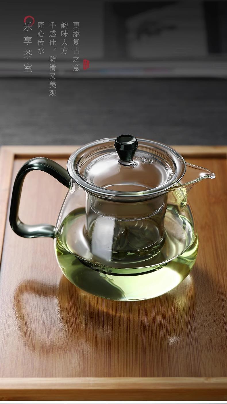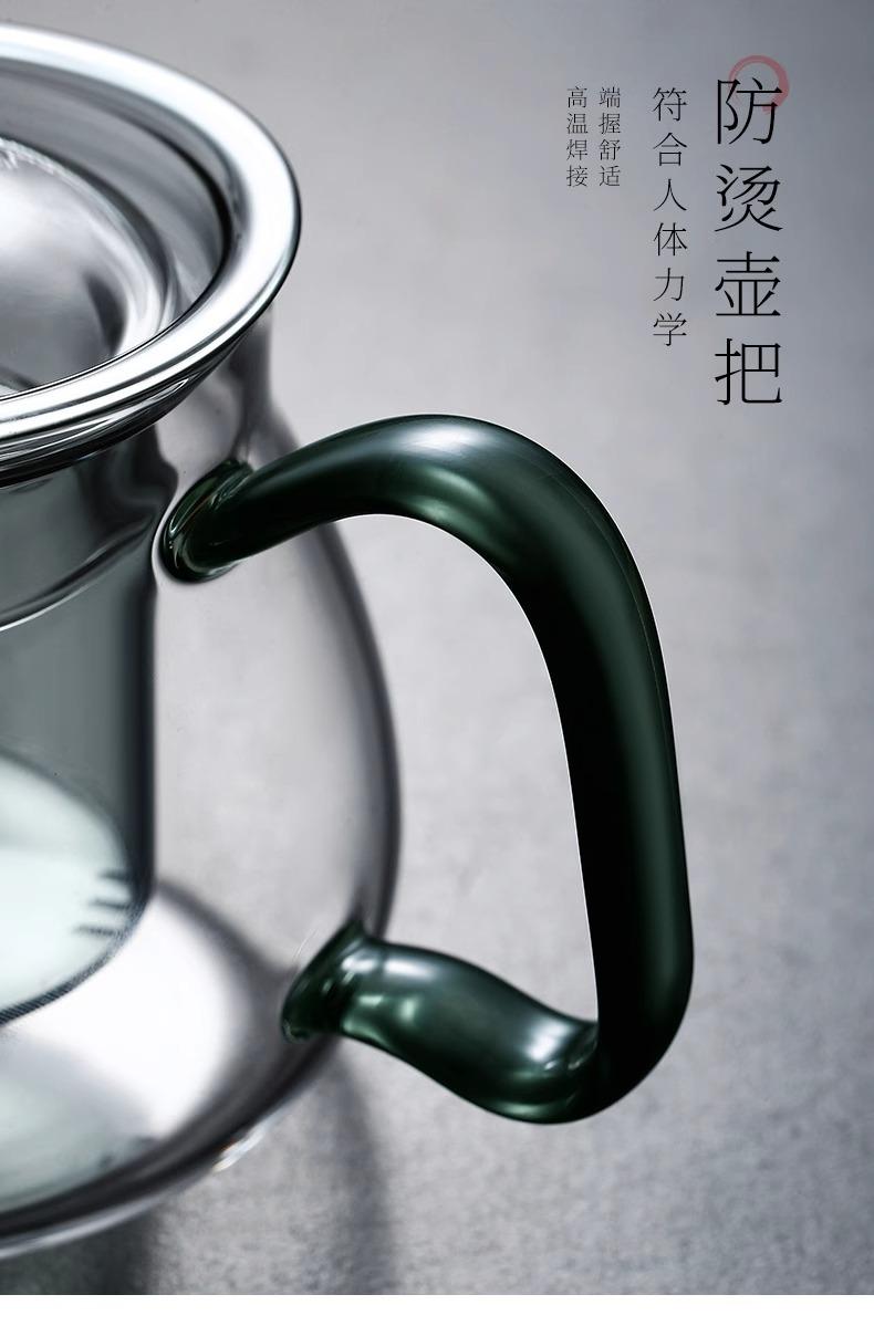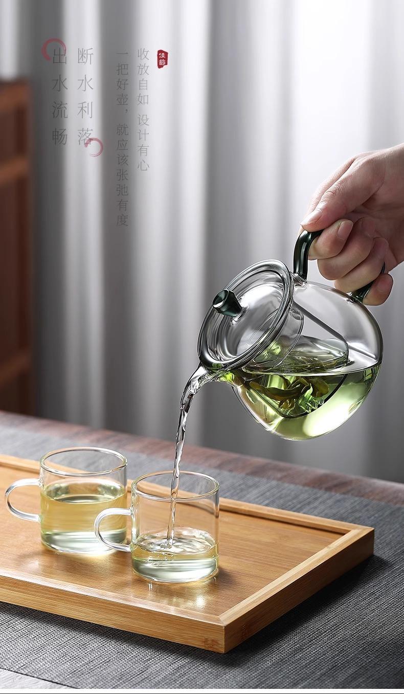 Tetera verde de vidrio de borosilicato de alta calidad, tetera doméstica, té japonés perfumado, juego de té con filtro espesado resistente a altas temperaturas.
