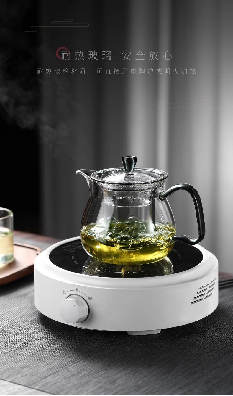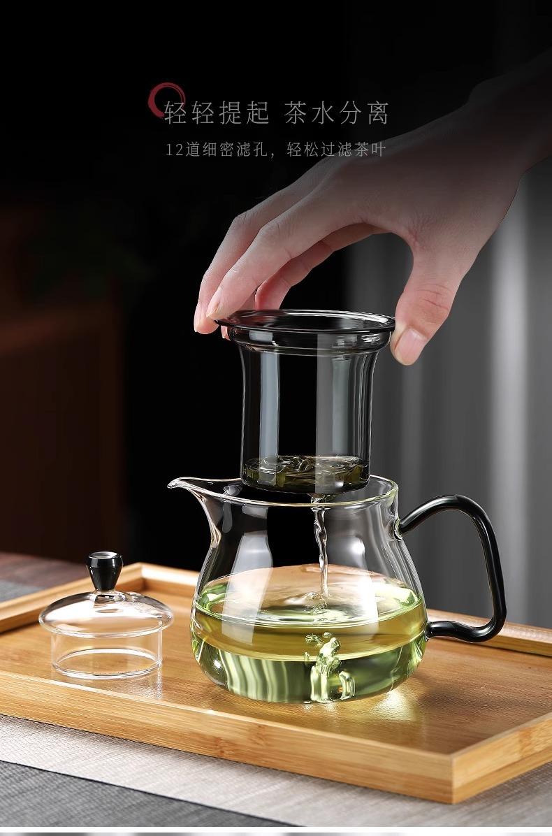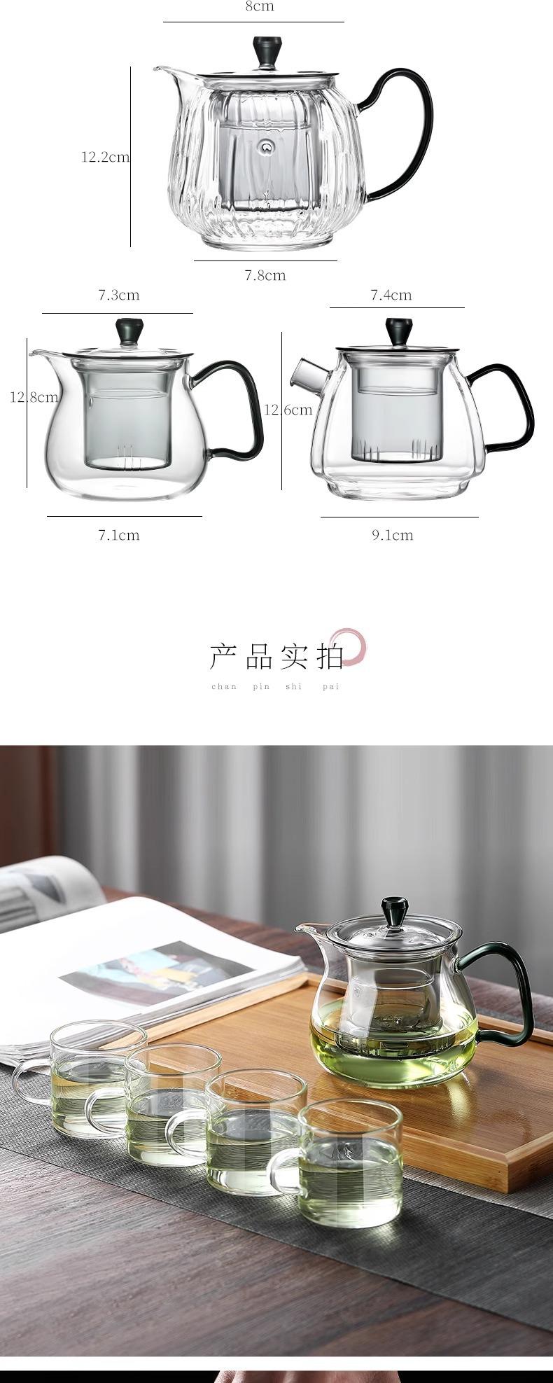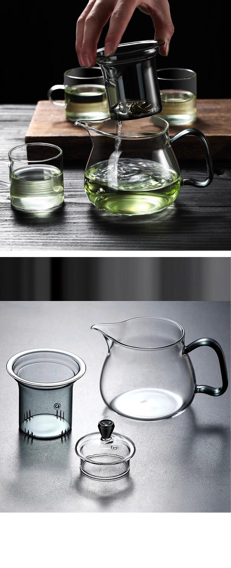 Tetera verde de vidrio de borosilicato de alta calidad, tetera doméstica, té japonés perfumado, juego de té con filtro espesado resistente a altas temperaturas.