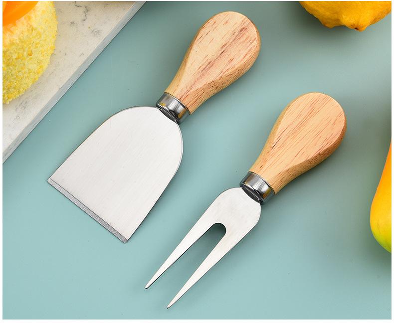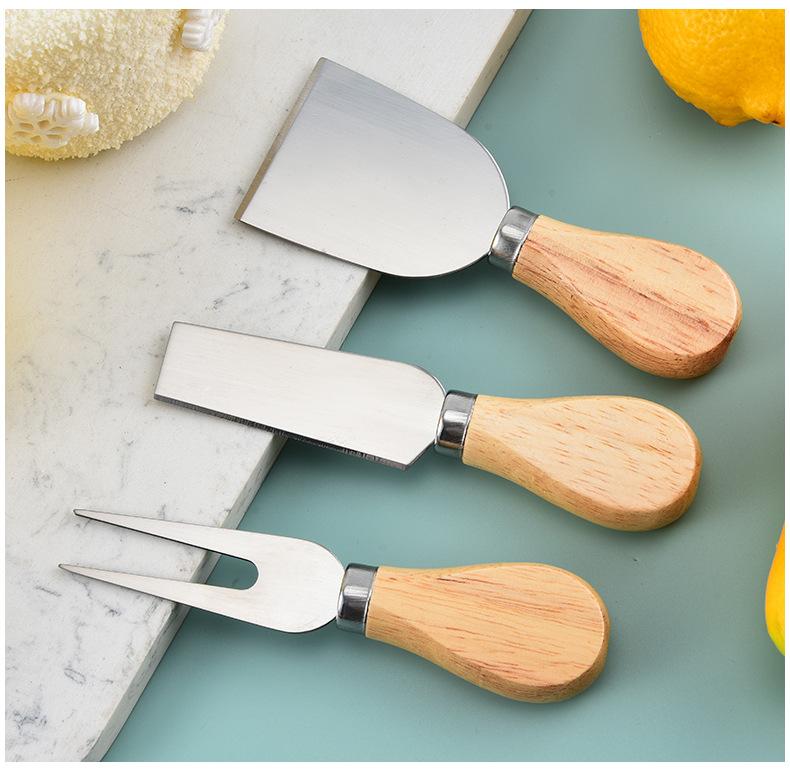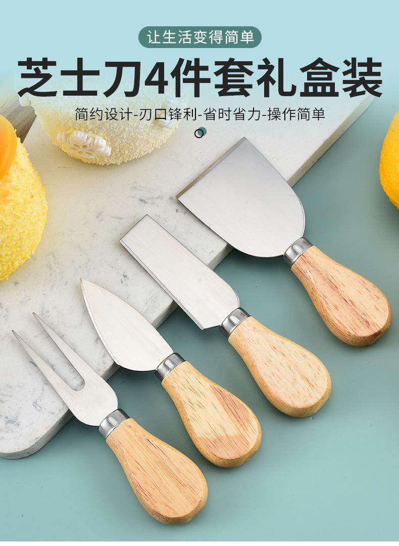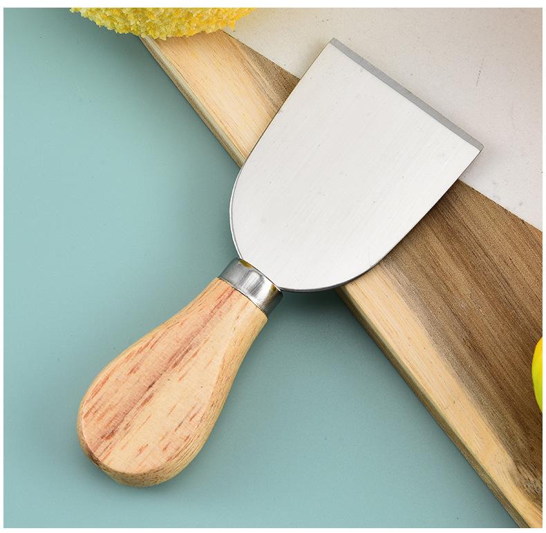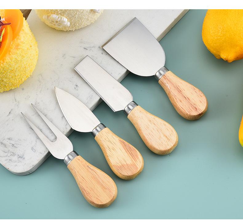 Cuchillo de queso de acero inoxidable, 4 piezas, mango de madera, cortador de crema, cuchillo para pizza, cuchillo para queso, venta al por mayor de fábrica