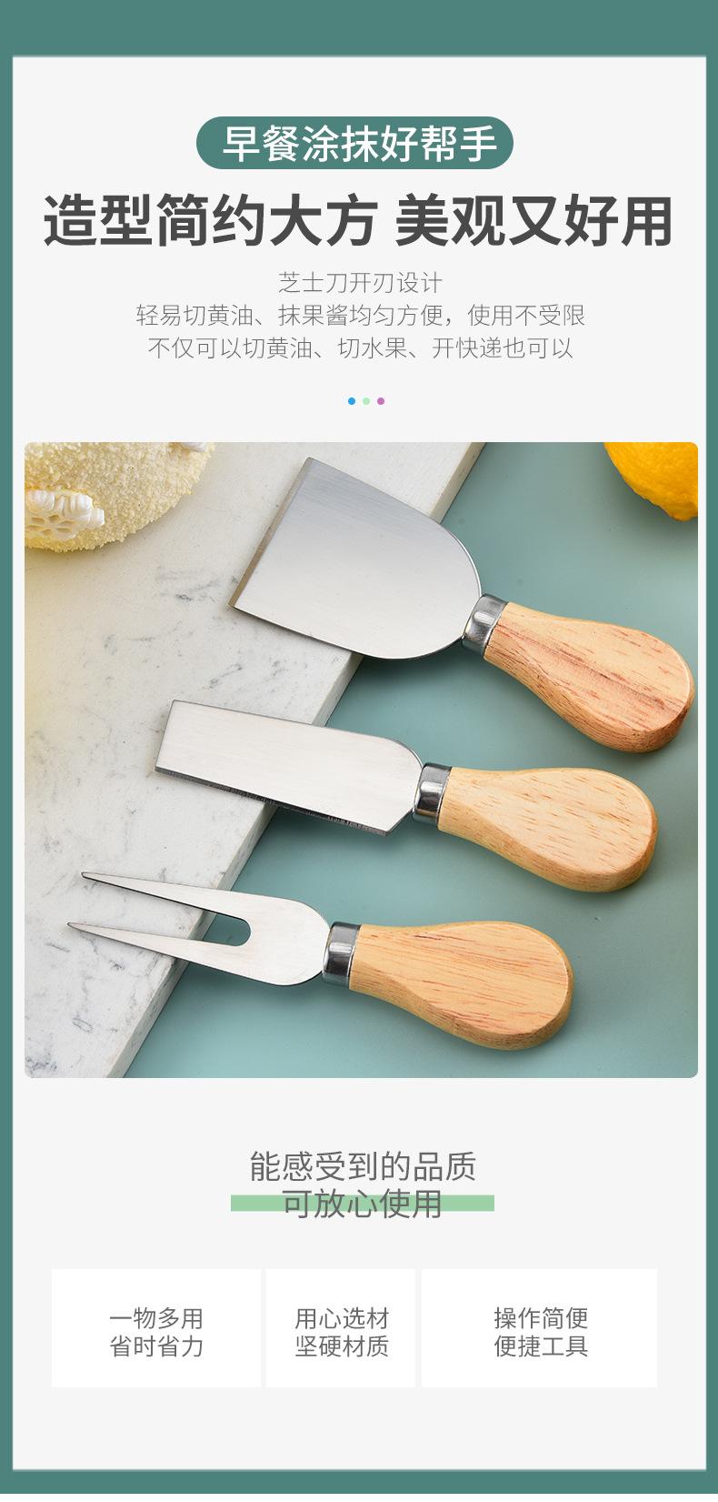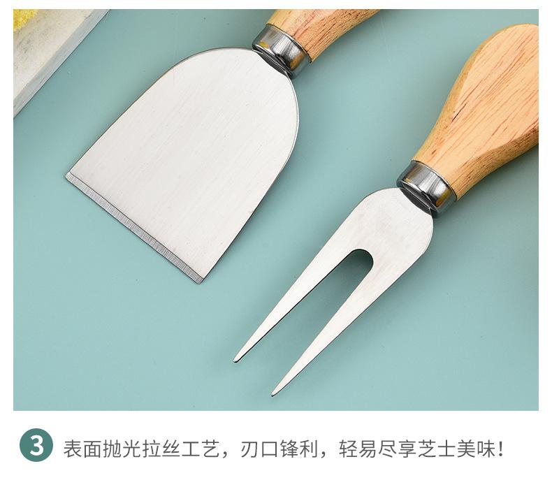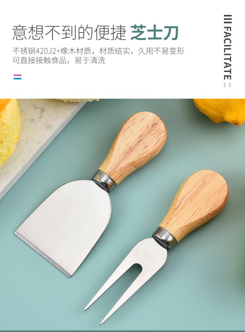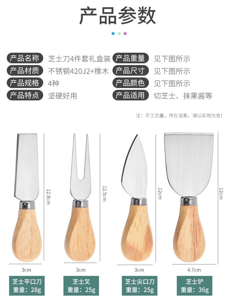Cuchillo de queso de acero inoxidable, 4 piezas, mango de madera, cortador de crema, cuchillo para pizza, cuchillo para queso, venta al por mayor de fábrica