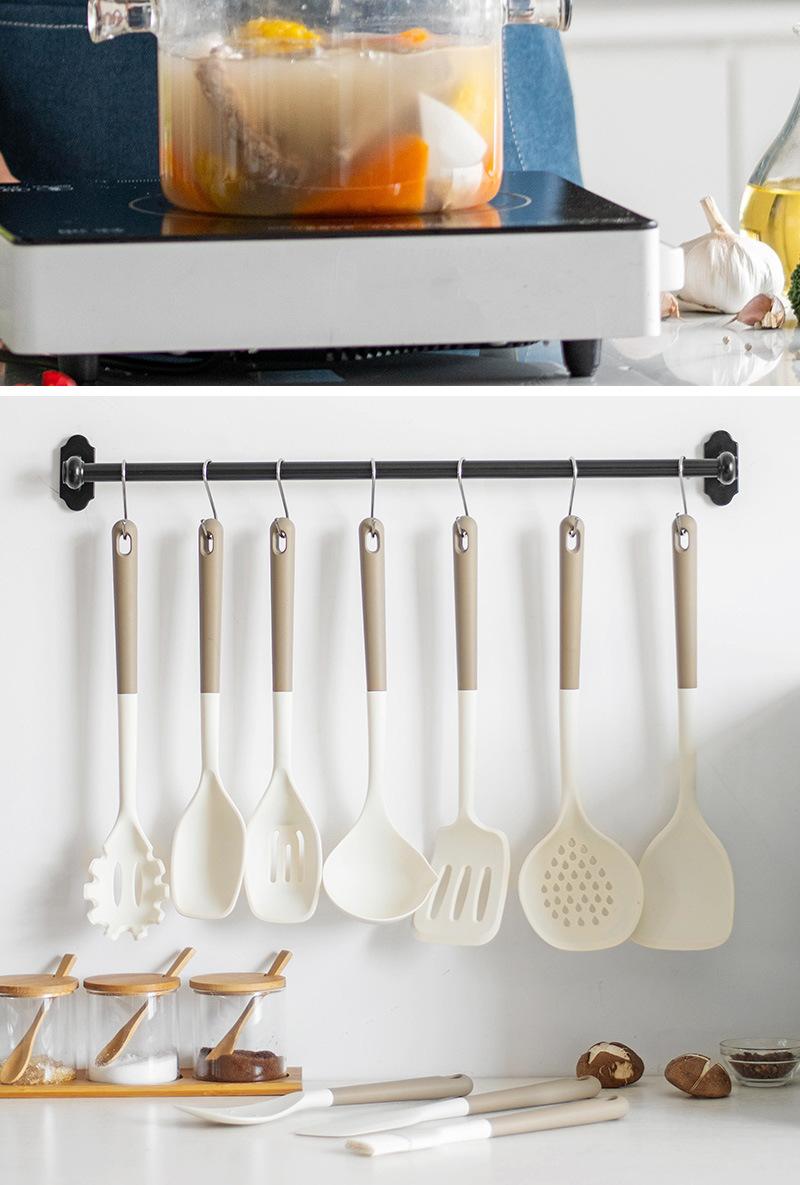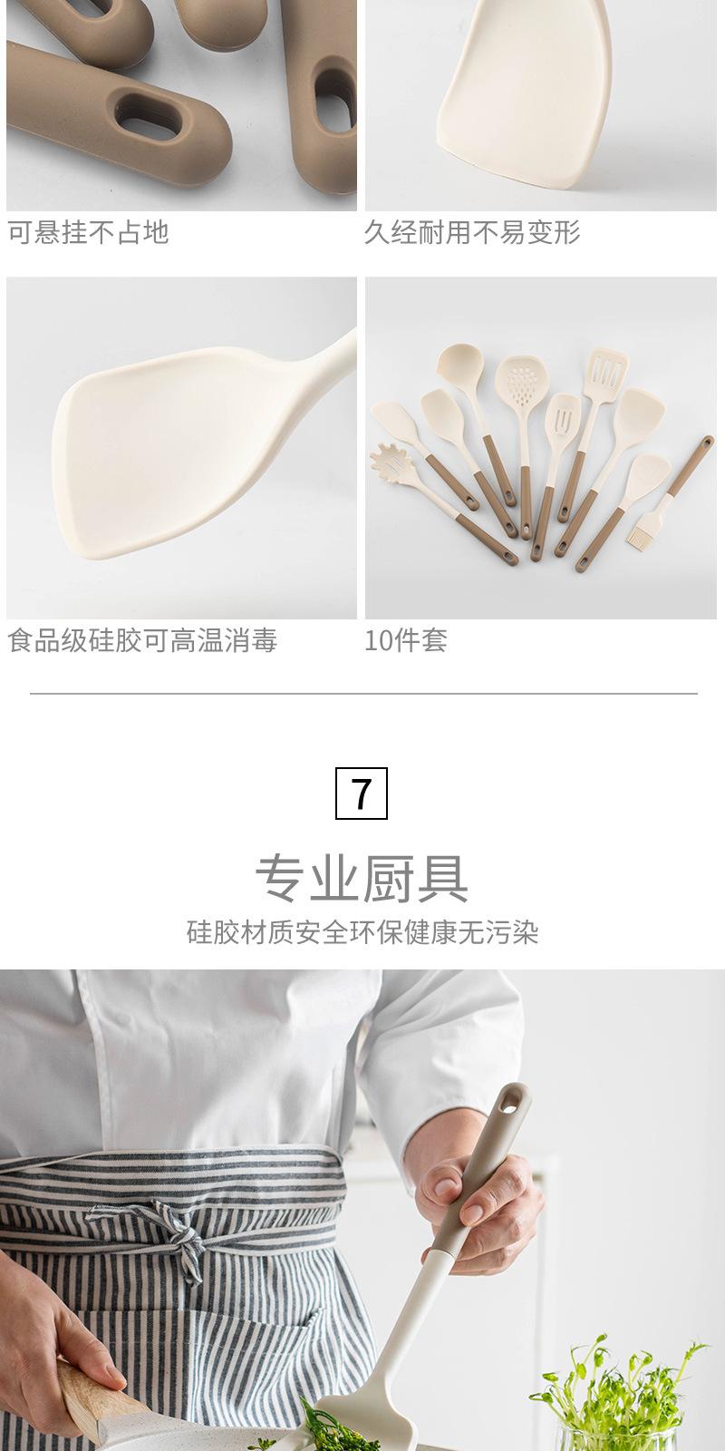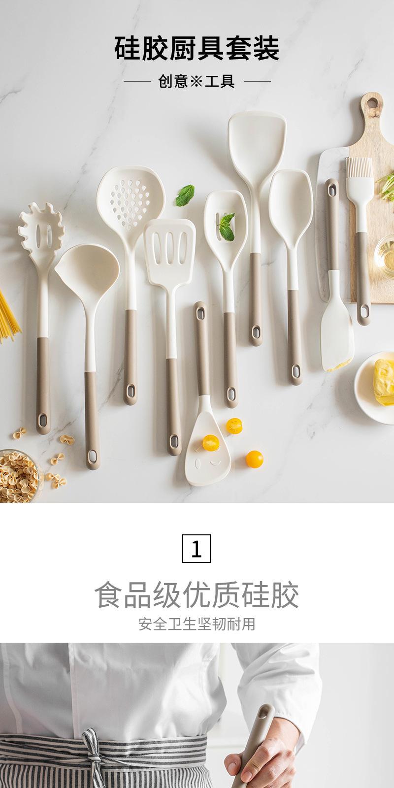 Spatula, Soup spoon, Spatula, Large colander, Small colander, Dense spoon, Spaghetti claw, Rice spoon, Oil Brush, Scraper