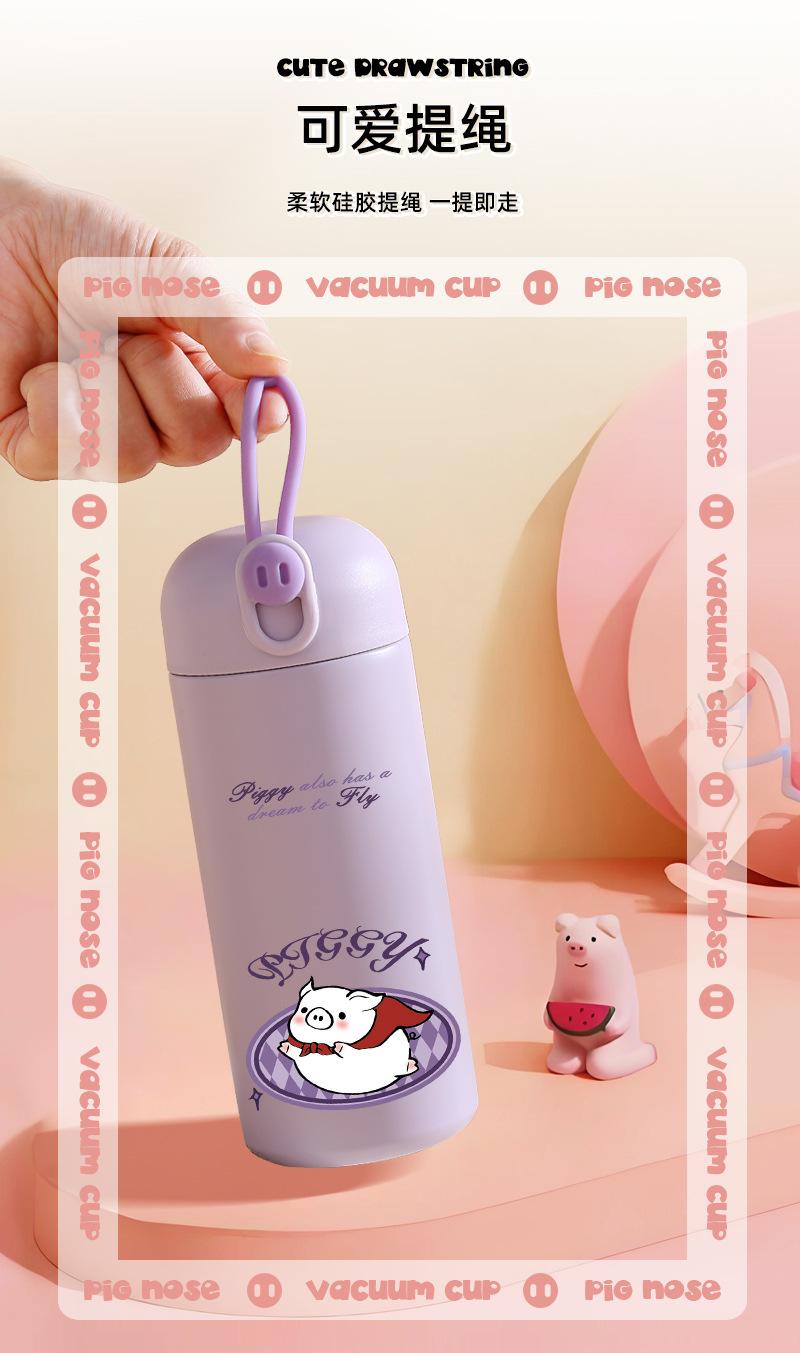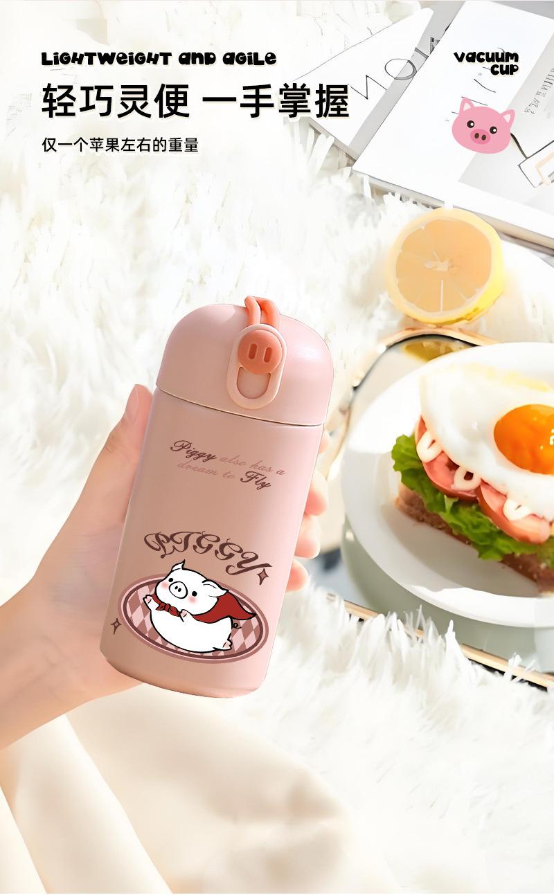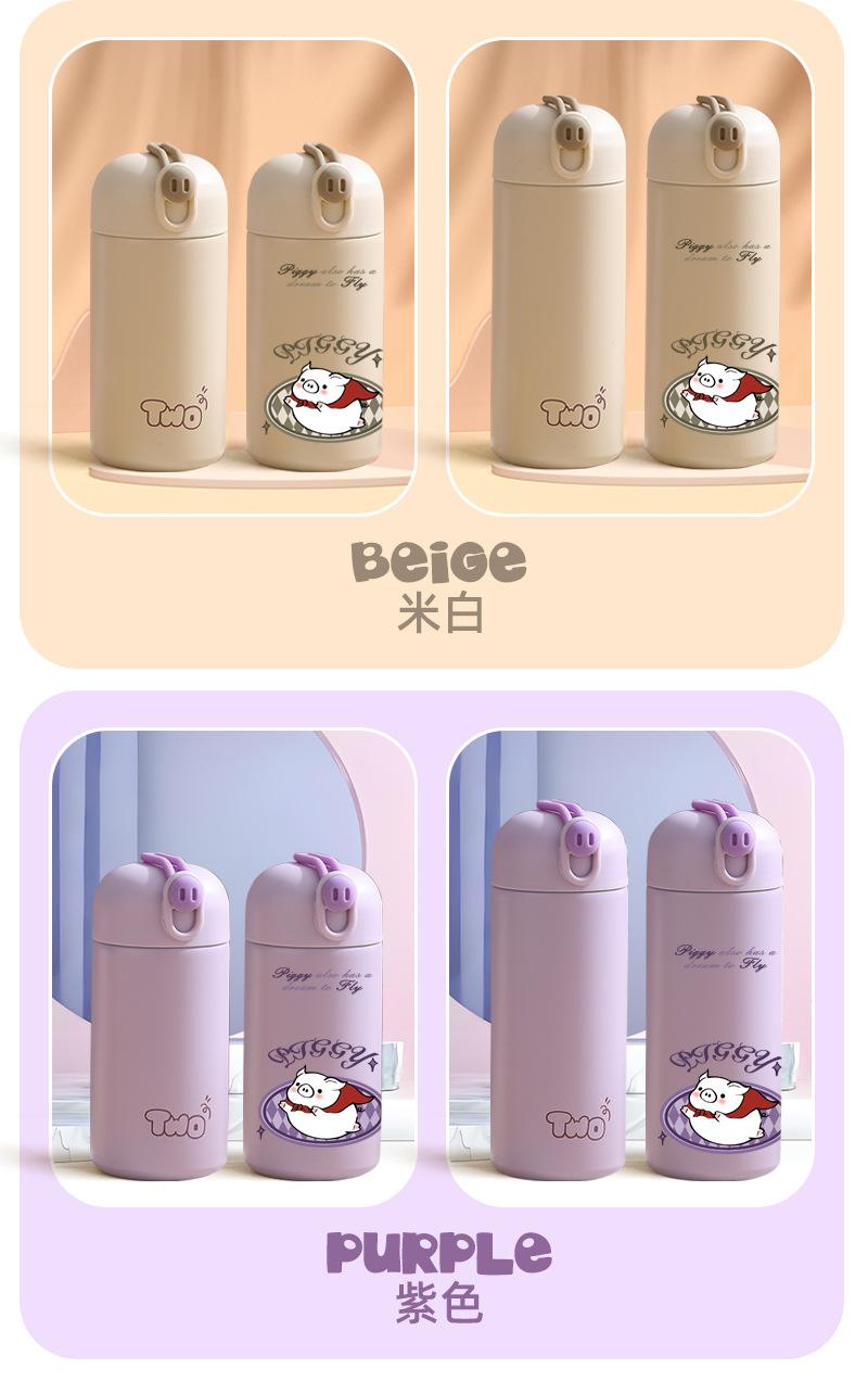 Vaso Termo de Acero Inoxidable para Estudiante Nuevo con Correa Oculta, Botella de Agua para Niños Linda y de Aspecto Sofisticado, Mini Portátil de Dibujos Animados