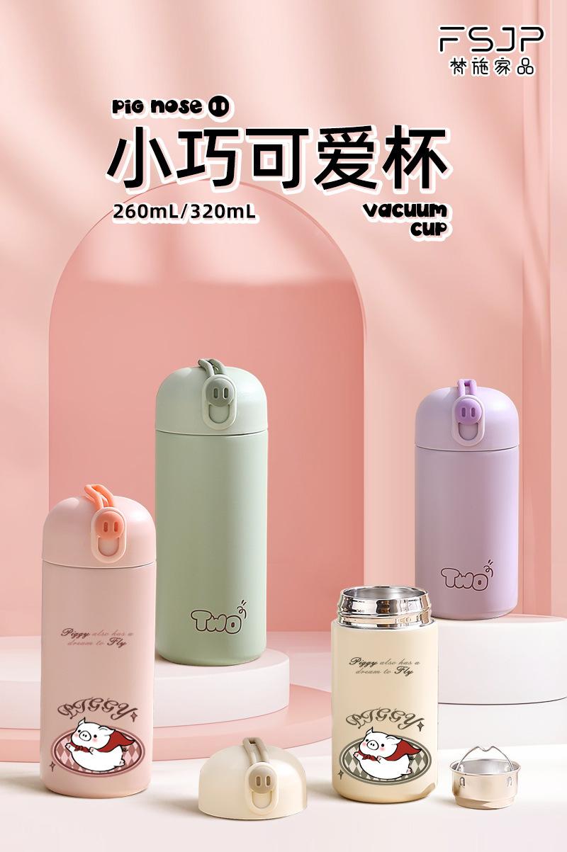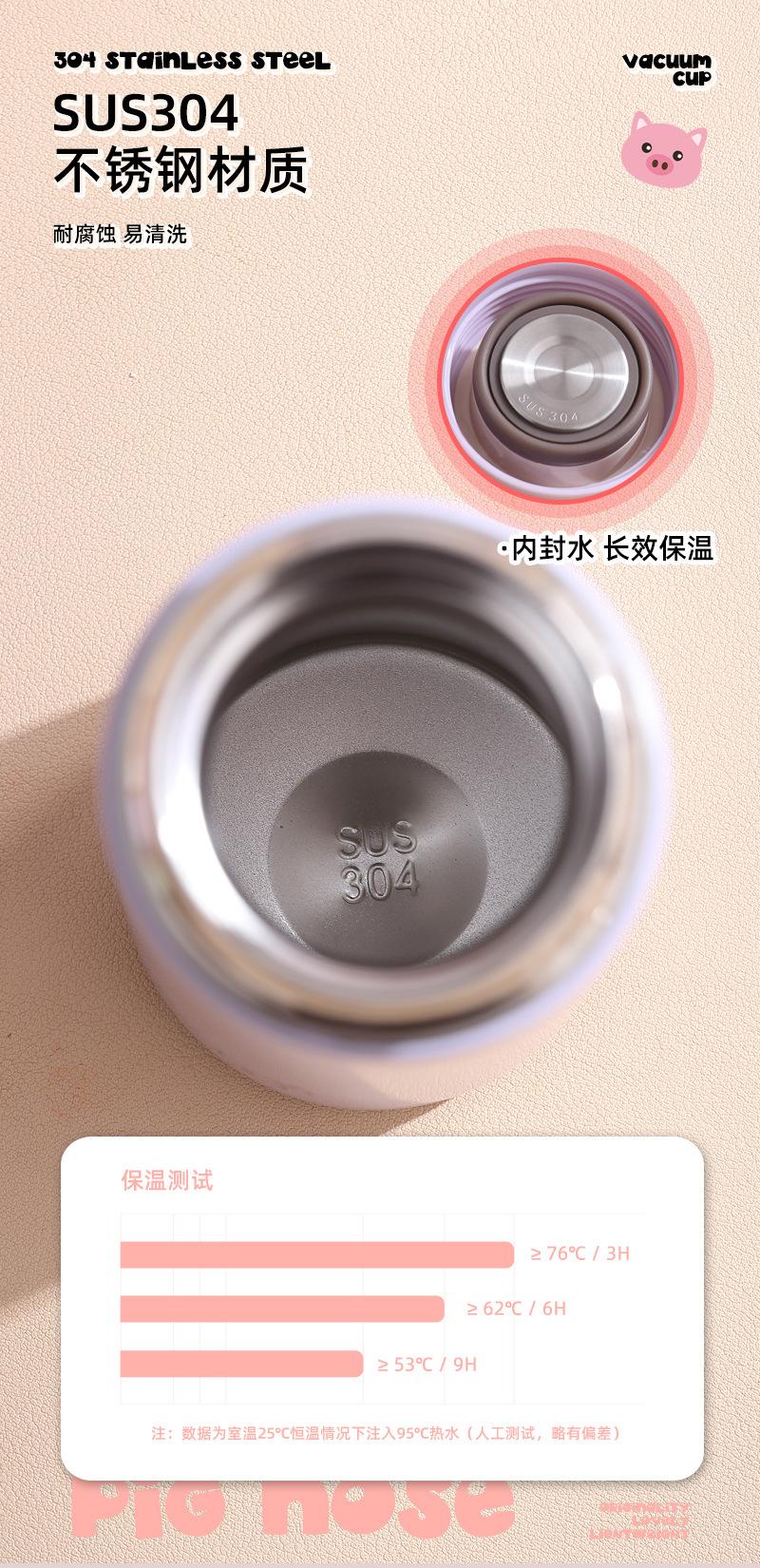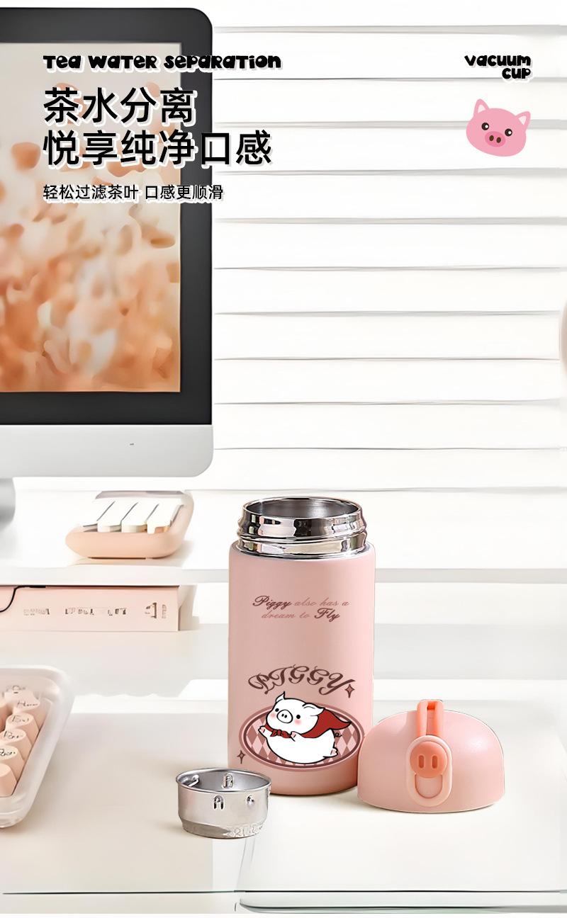 Vaso Termo de Acero Inoxidable para Estudiante Nuevo con Correa Oculta, Botella de Agua para Niños Linda y de Aspecto Sofisticado, Mini Portátil de Dibujos Animados
