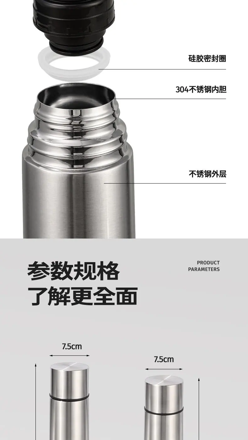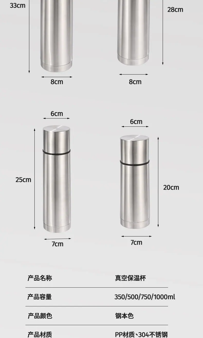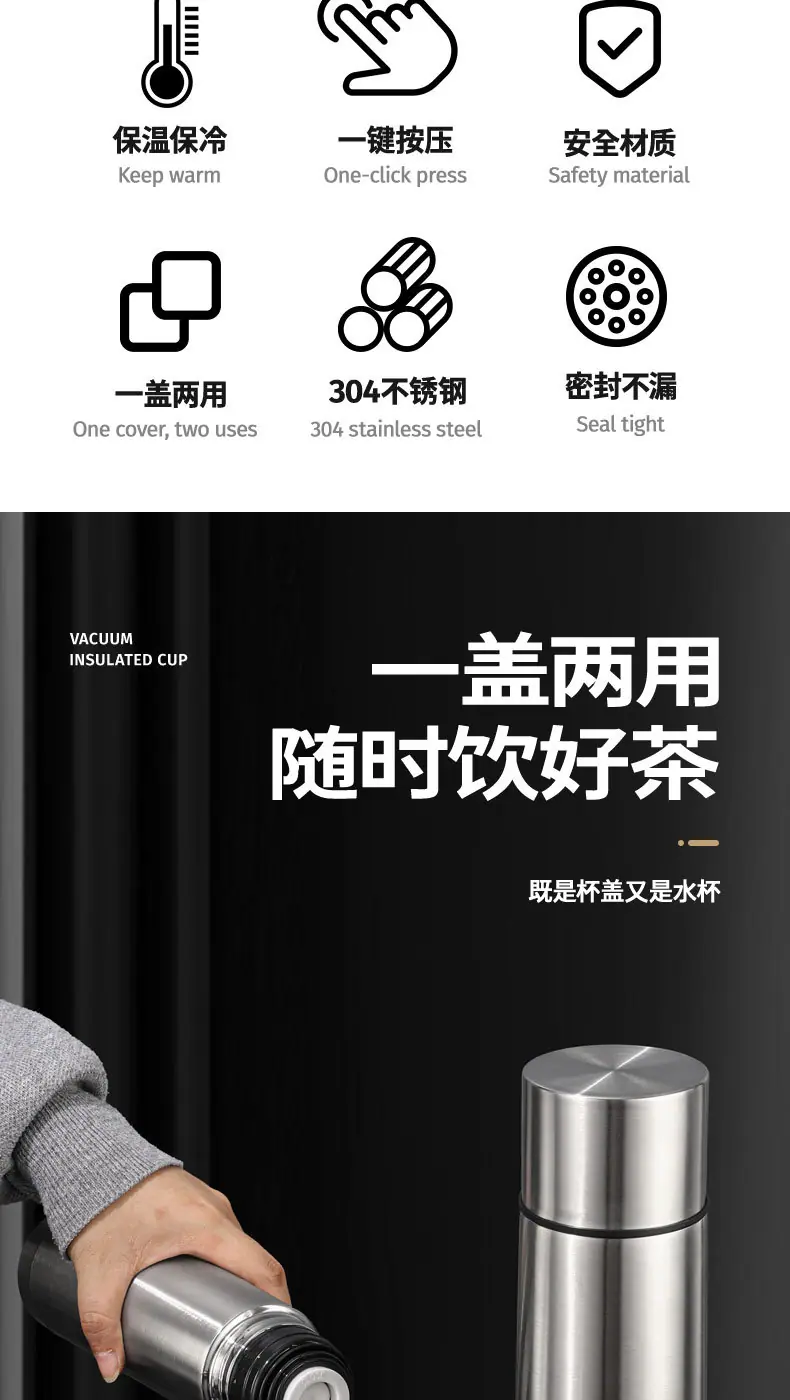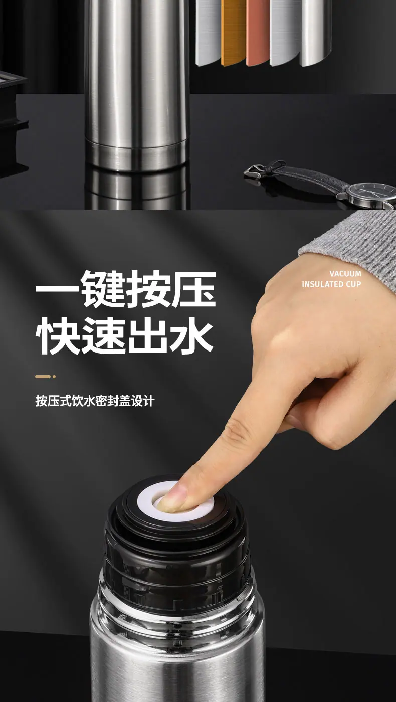 Vaso Termo Casual de Acero Inoxidable 304 de Gran Capacidad Botella Termo con Botón Recto Ventas Directas de Fábrica Vaso para Agua Vaso al Por Mayor