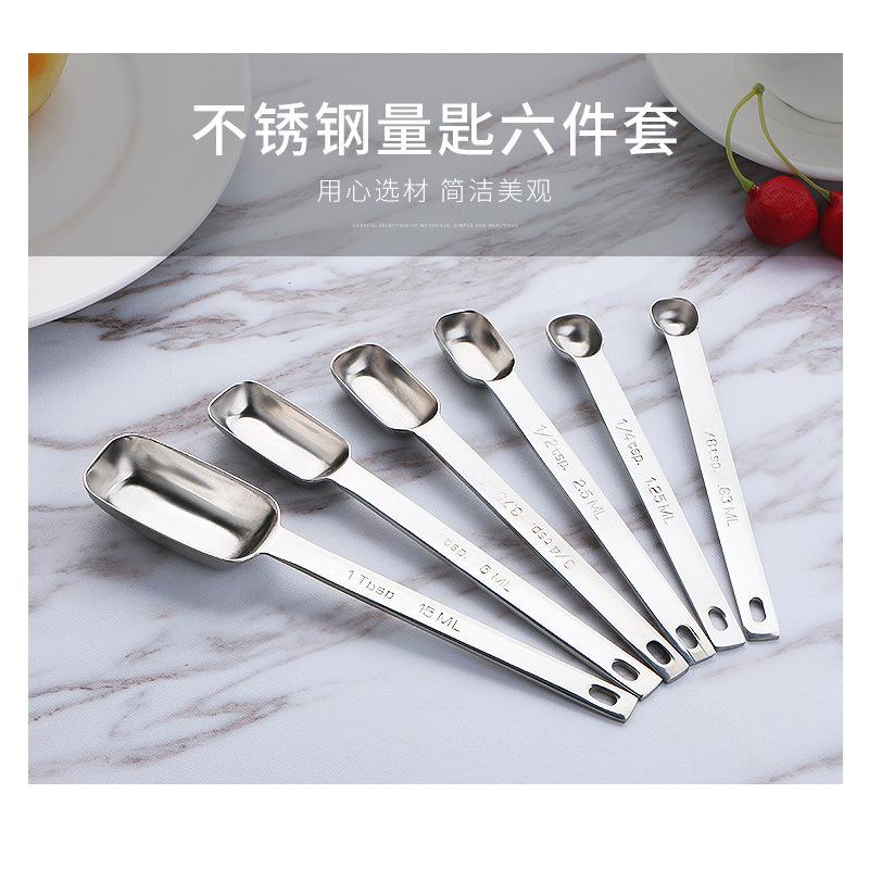 Compra Juego de 6 cucharas medidoras de acero inoxidable 304, cucharas cuadradas para gramos, herramientas para hornear, cucharas medidoras de leche en polvo, cucharas de café con escala cuantitativa al por mayor en Joom.pro
