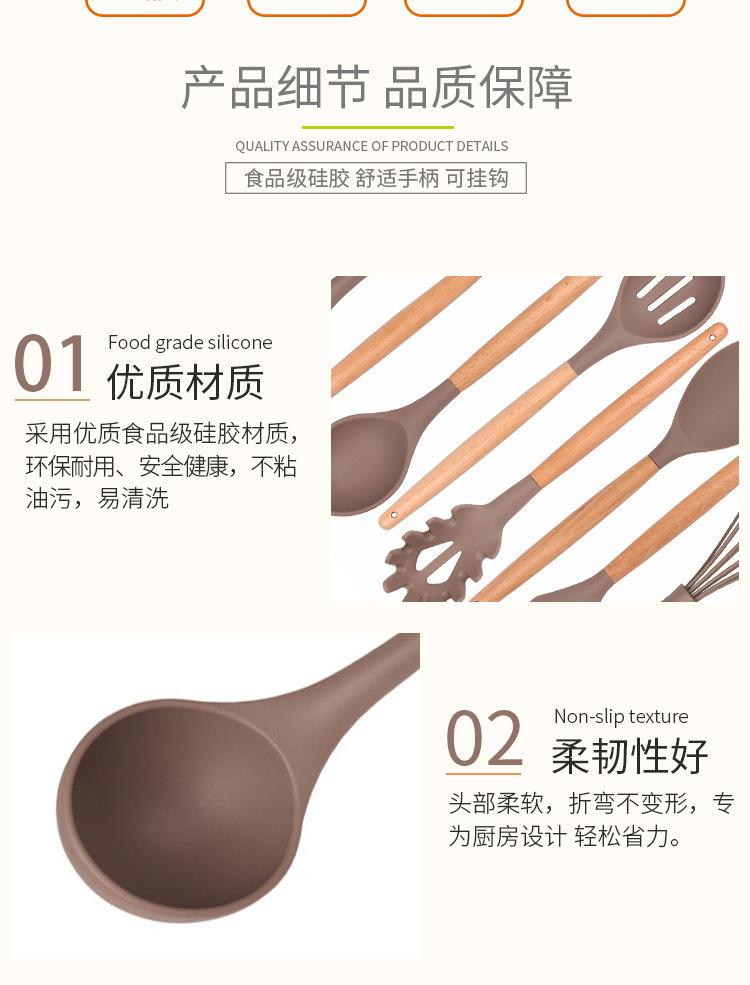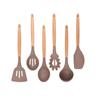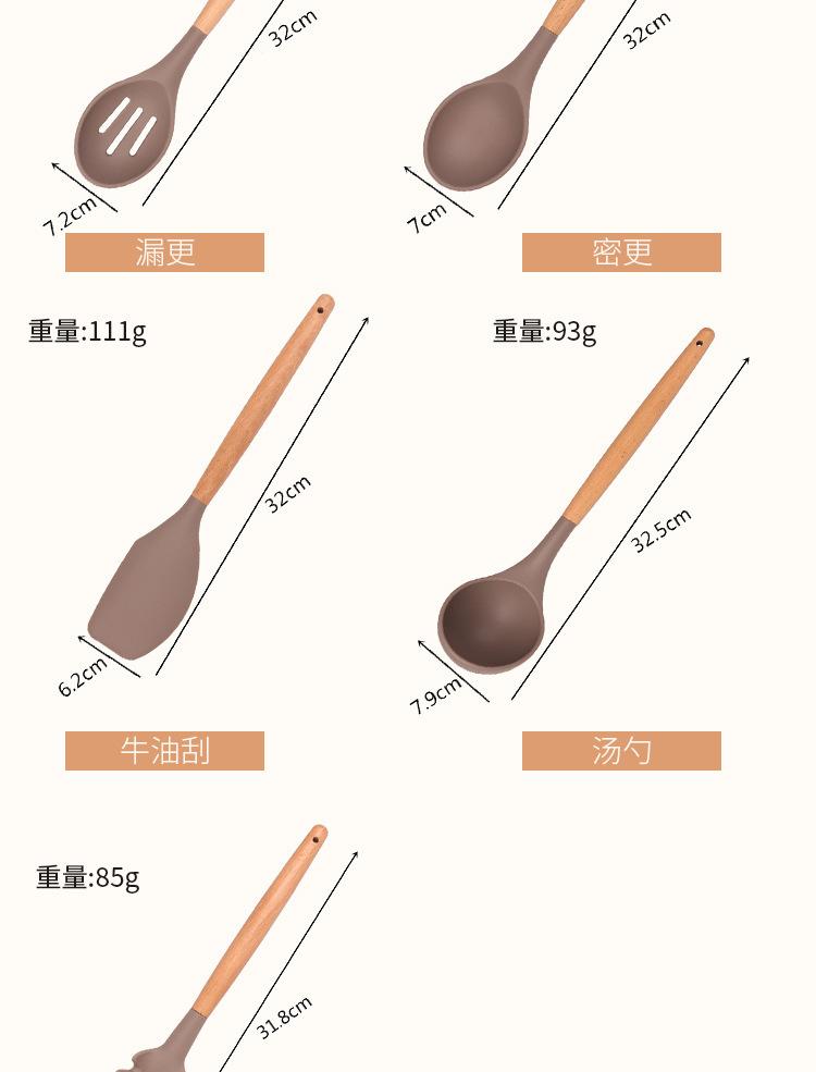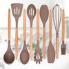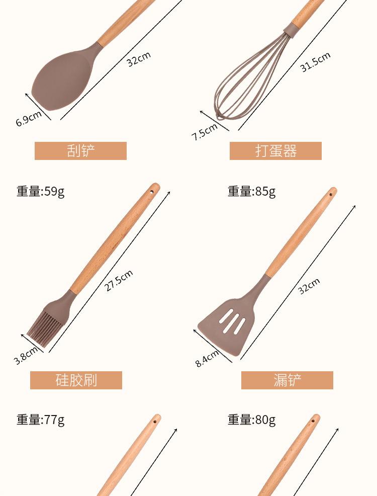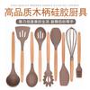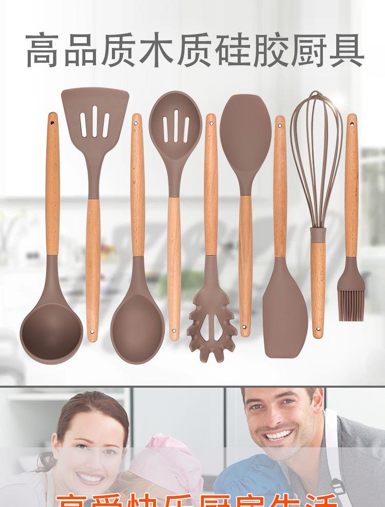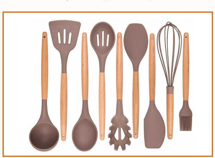 Juego de utensilios de cocina de silicona con mango de madera y mango de haya, cuchara sopera de bolsillo de silicona, juego de 9 piezas, utensilios de cocina antiadherentes para cocina.