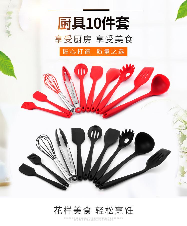 Juego de 10 piezas de utensilios de cocina de silicona para el hogar, pala, cuchara, espátula de silicona, utensilios de cocina para el hogar