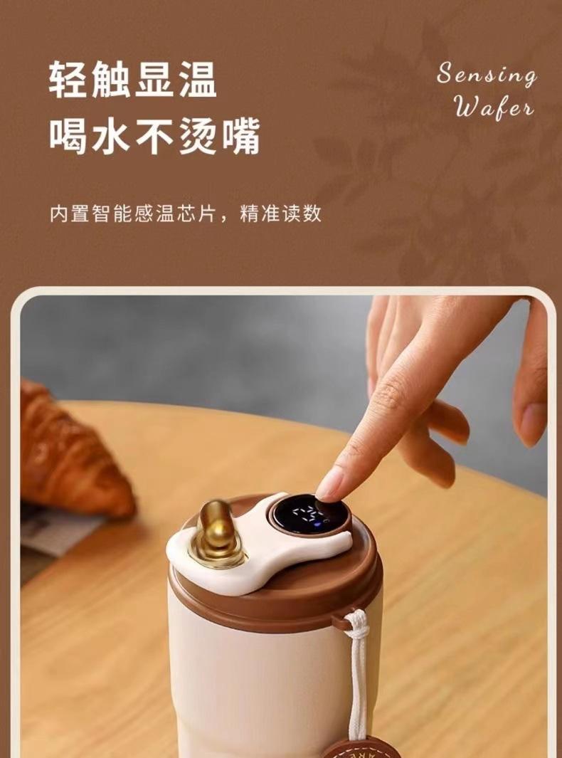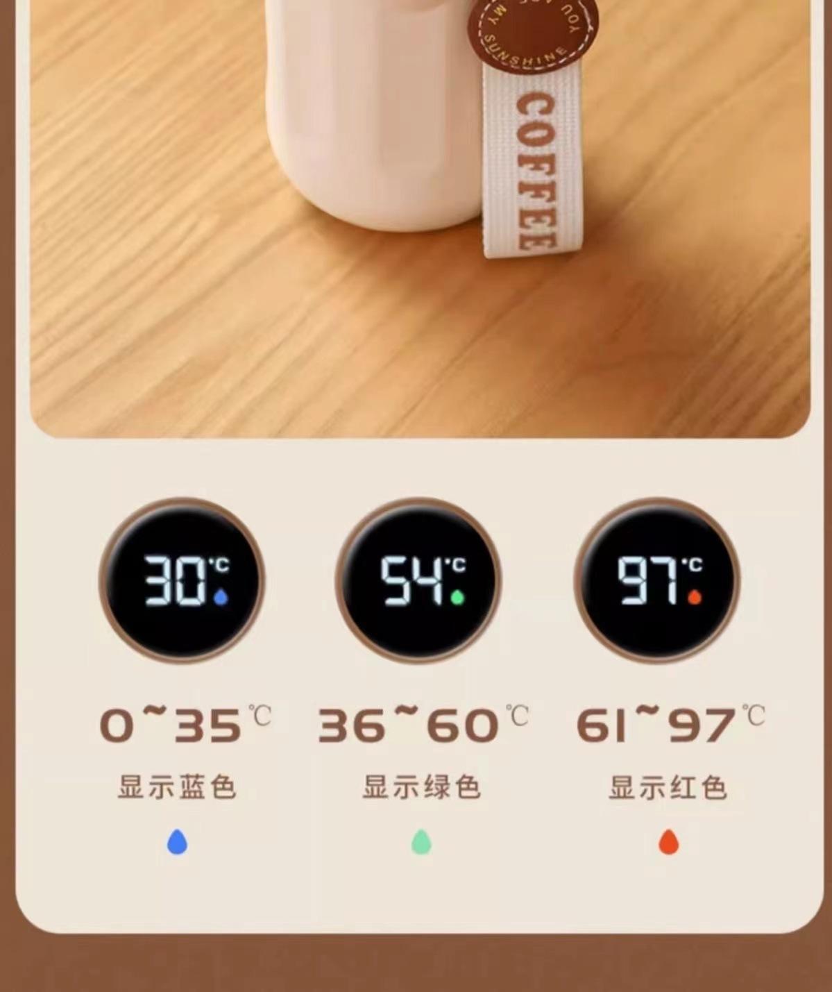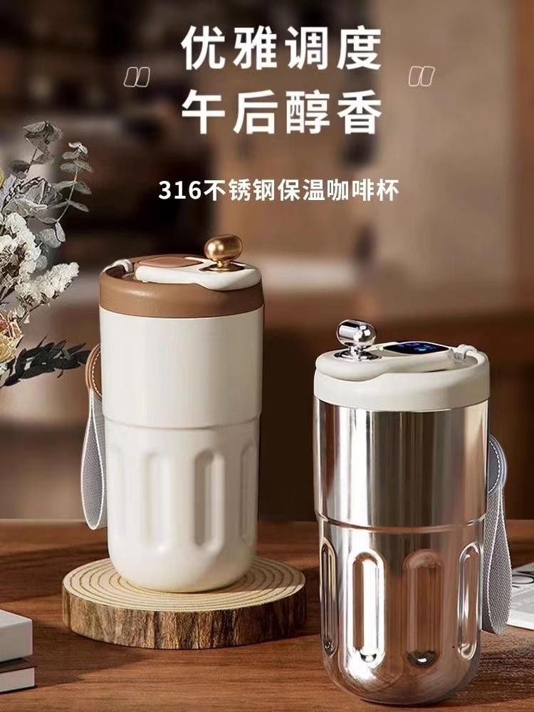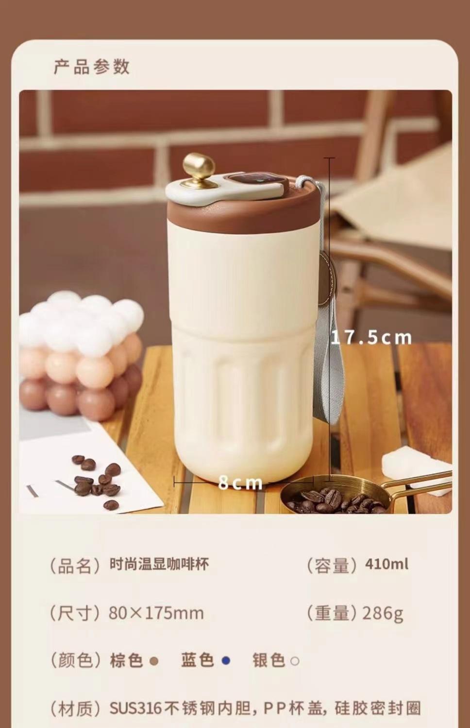 Taza de Café de Acero Inoxidable 316 con Rayas de Aspecto Alto, Taza de Agua con Medición Inteligente de Temperatura con Asa, Vaso Termo con Impresión de Logo