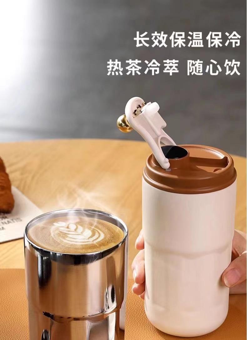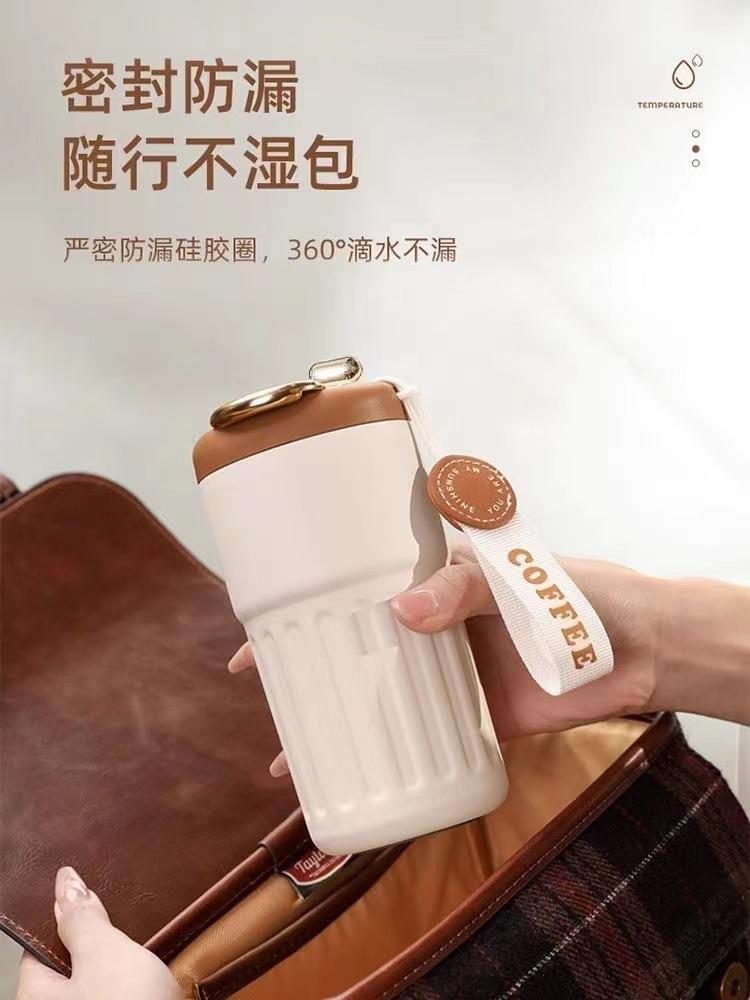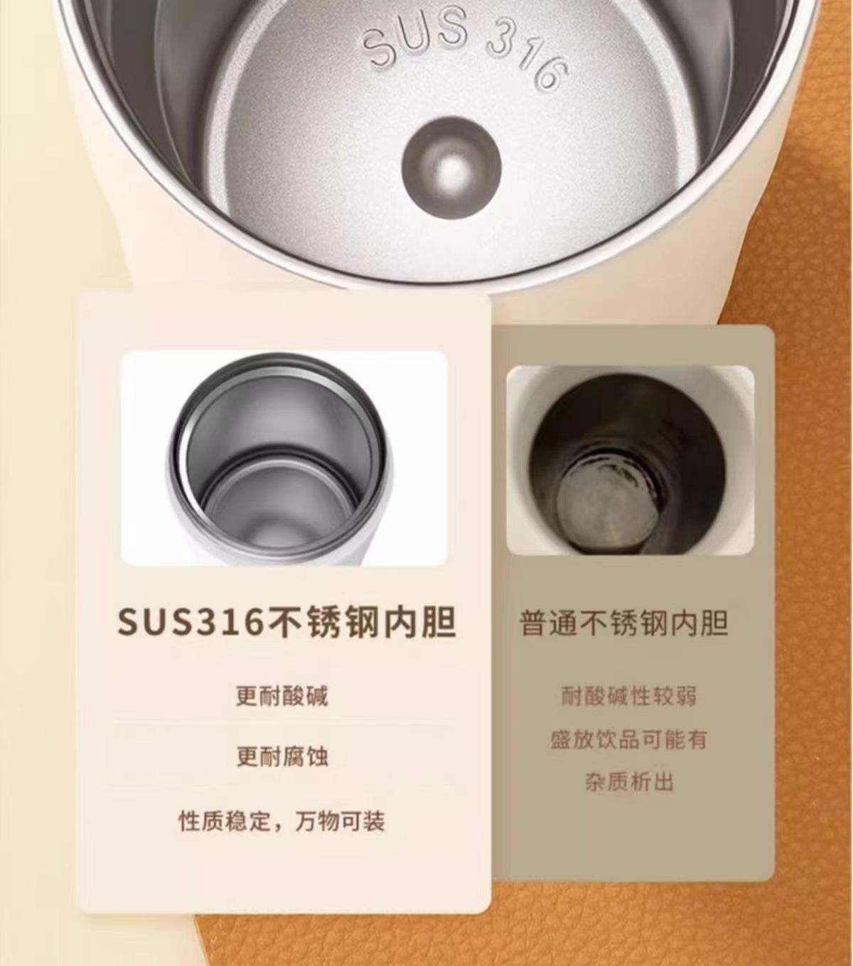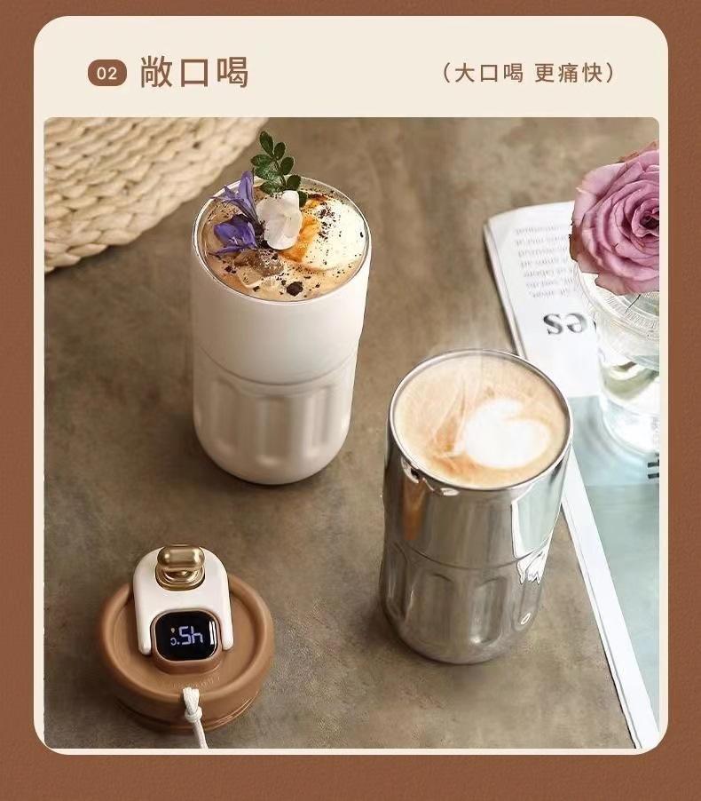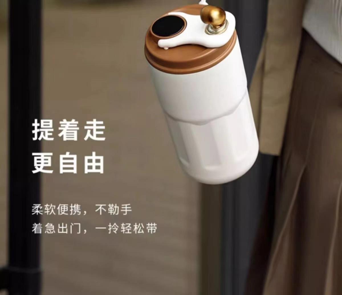 Taza de Café de Acero Inoxidable 316 con Rayas de Aspecto Alto, Taza de Agua con Medición Inteligente de Temperatura con Asa, Vaso Termo con Impresión de Logo