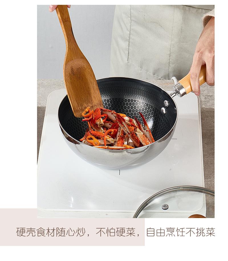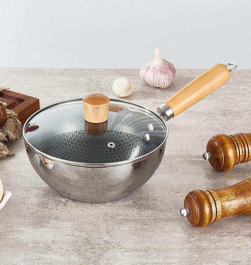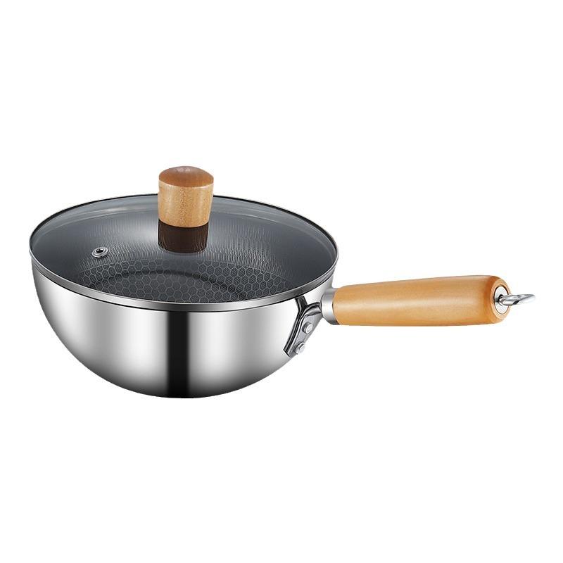 Compra Sartén antiadherente profunda de estilo japonés de acero inoxidable 304 sin revestimiento de tres capas, mini wok doméstico para gas universal al por mayor en Joom.pro