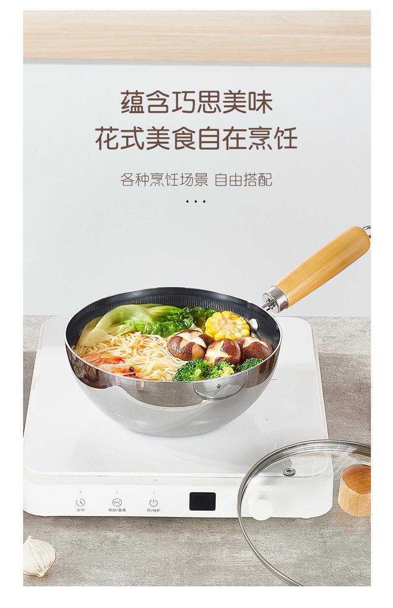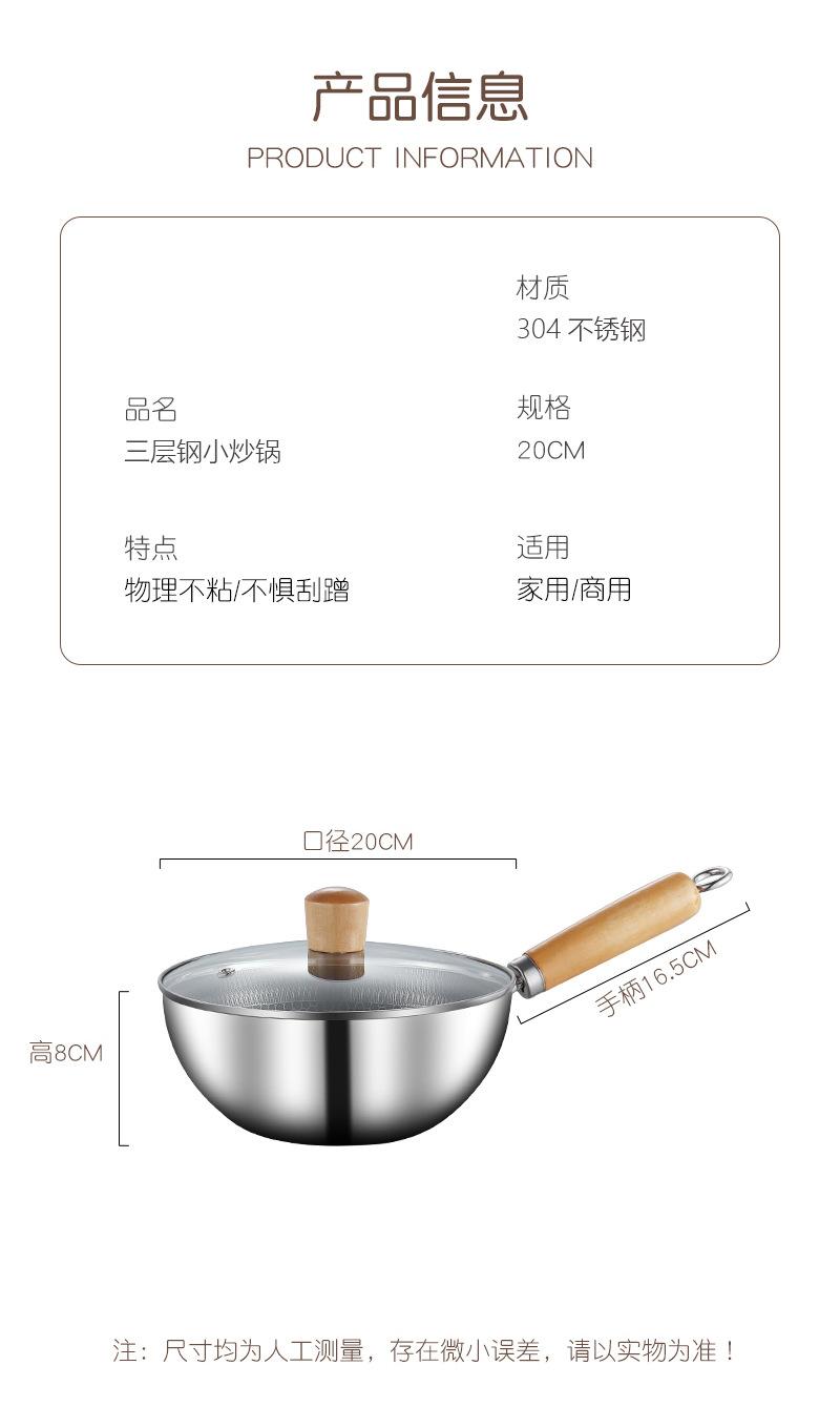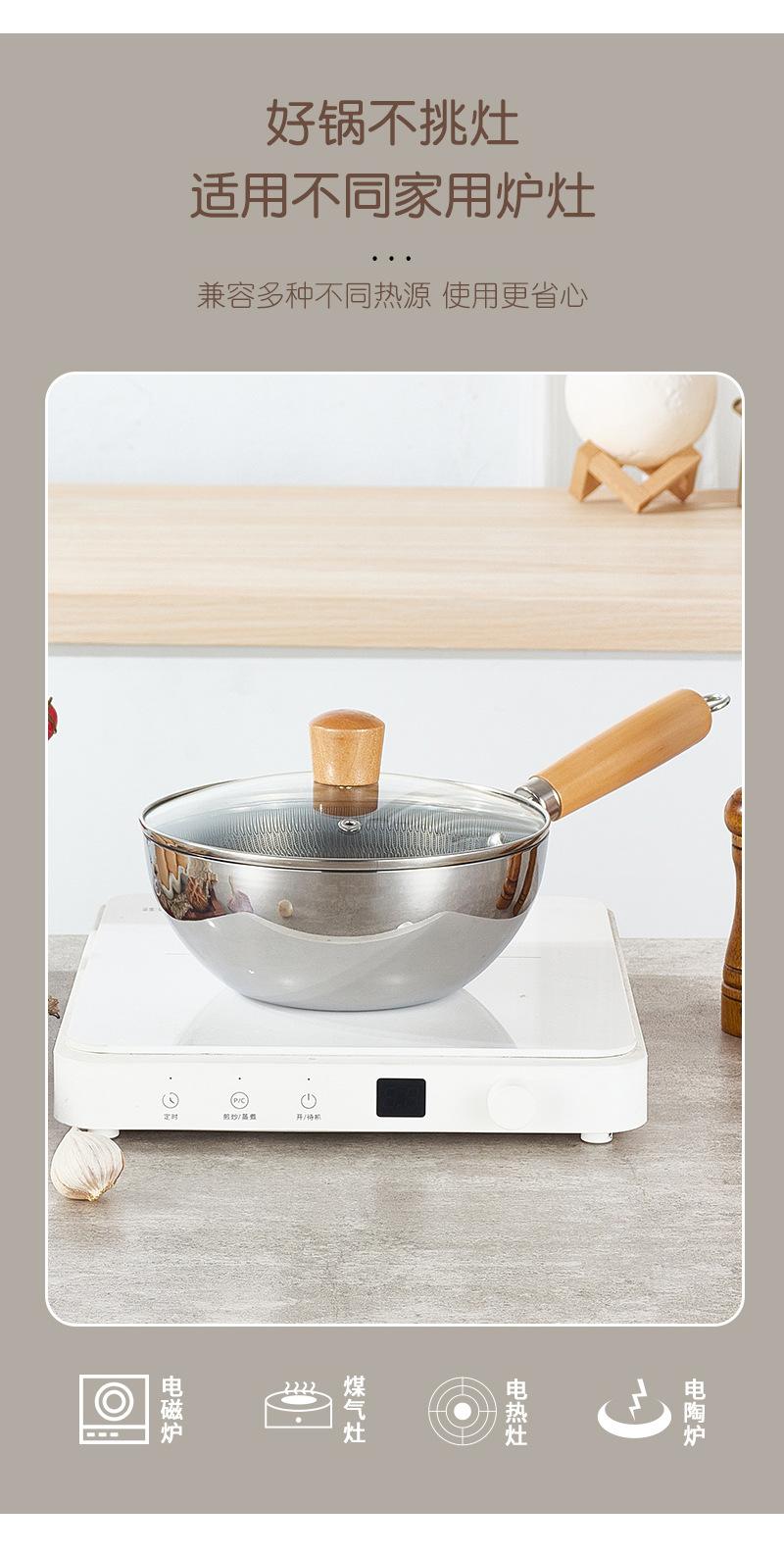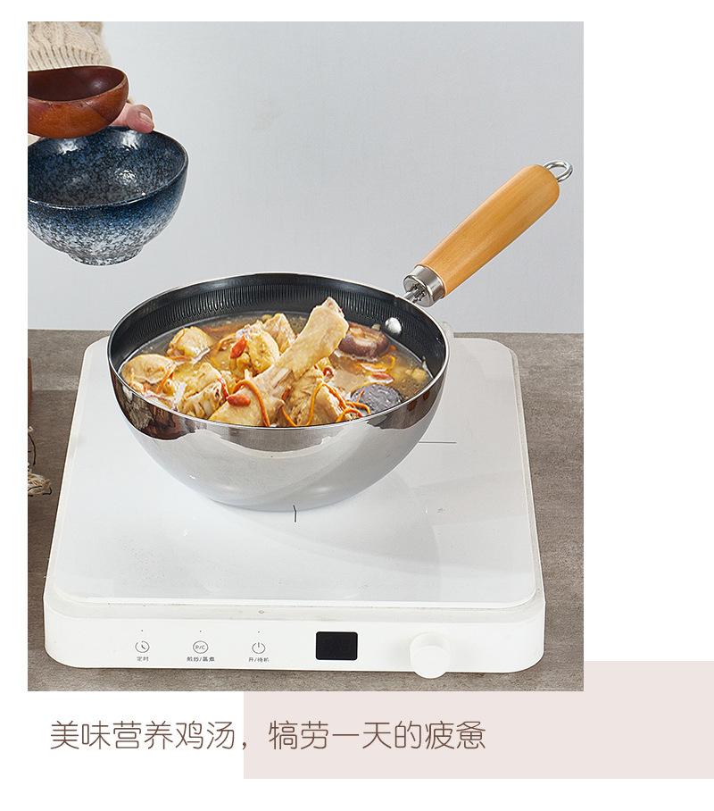 Sartén antiadherente profunda de estilo japonés de acero inoxidable 304 sin revestimiento de tres capas, mini wok doméstico para gas universal