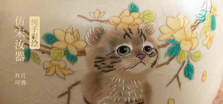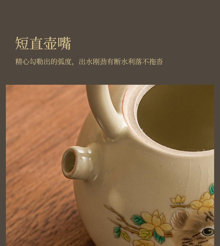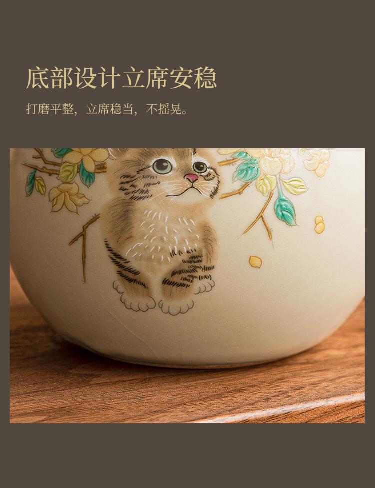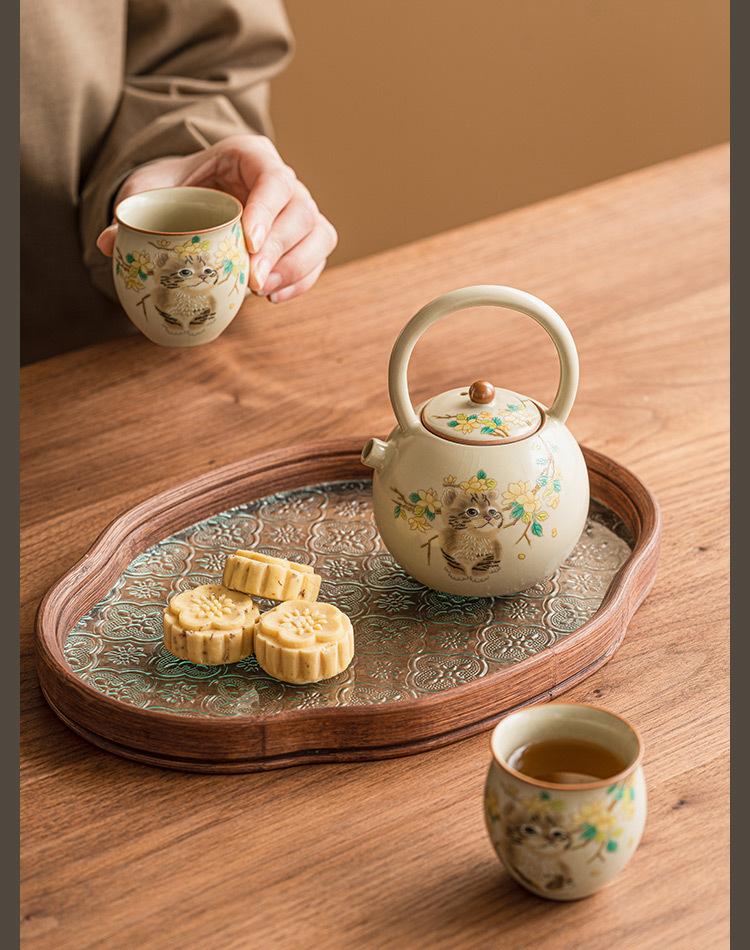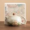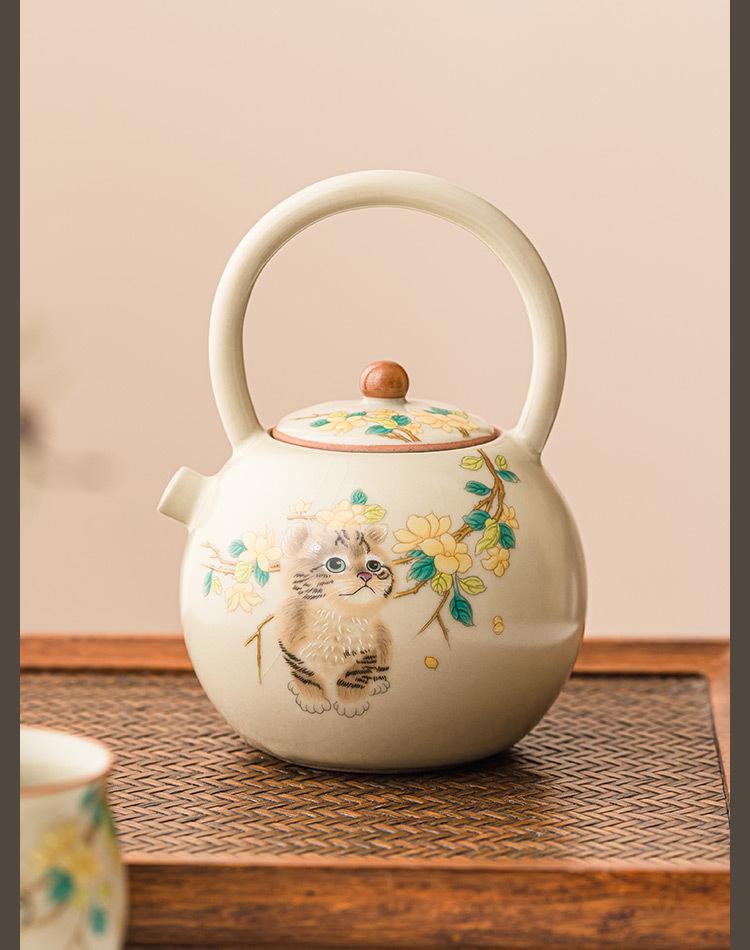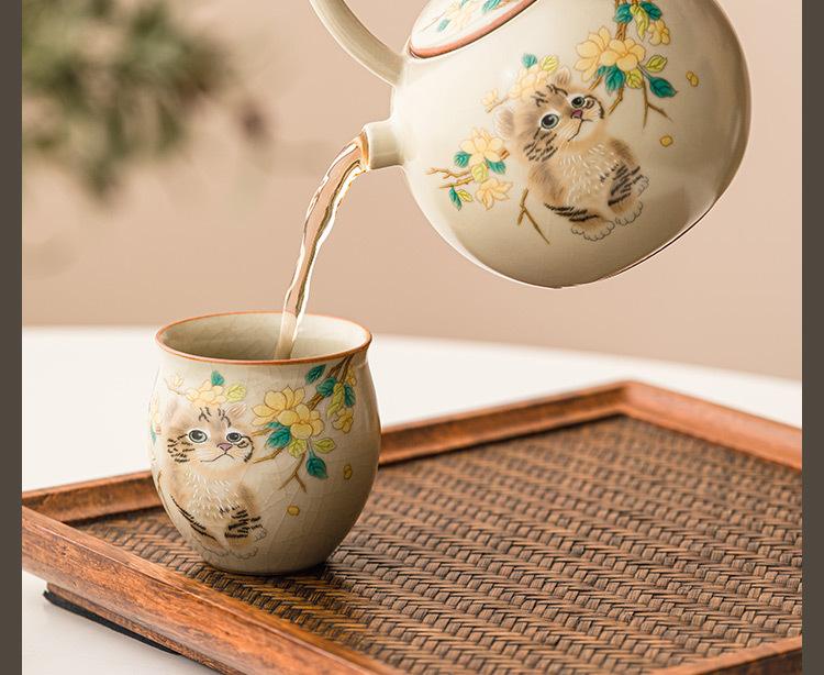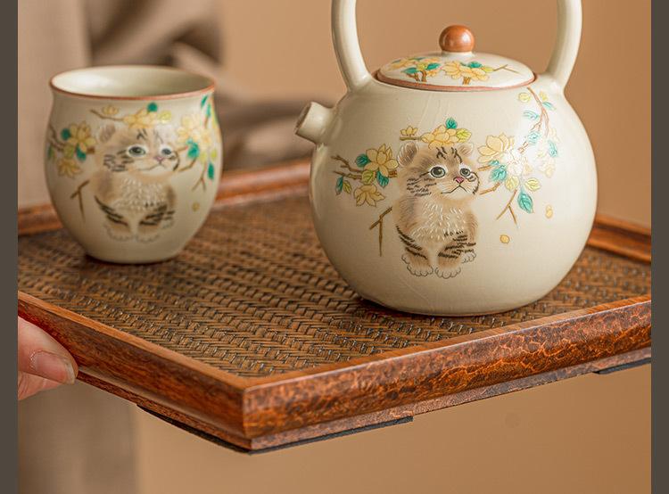 Horno Ru gato lindo tetera de elevación de haz perfecta juego de té traje para el hogar elaboración de té tetera pequeña tetera individual con tapa cerámica pieza abierta se puede levantar