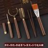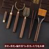 Juego completo al por mayor de accesorios para la ceremonia del té de ébano con pinzas para té de cinco caballeros, cuchillo, cuchara, taza, tenedor, tetera y bolígrafo.
