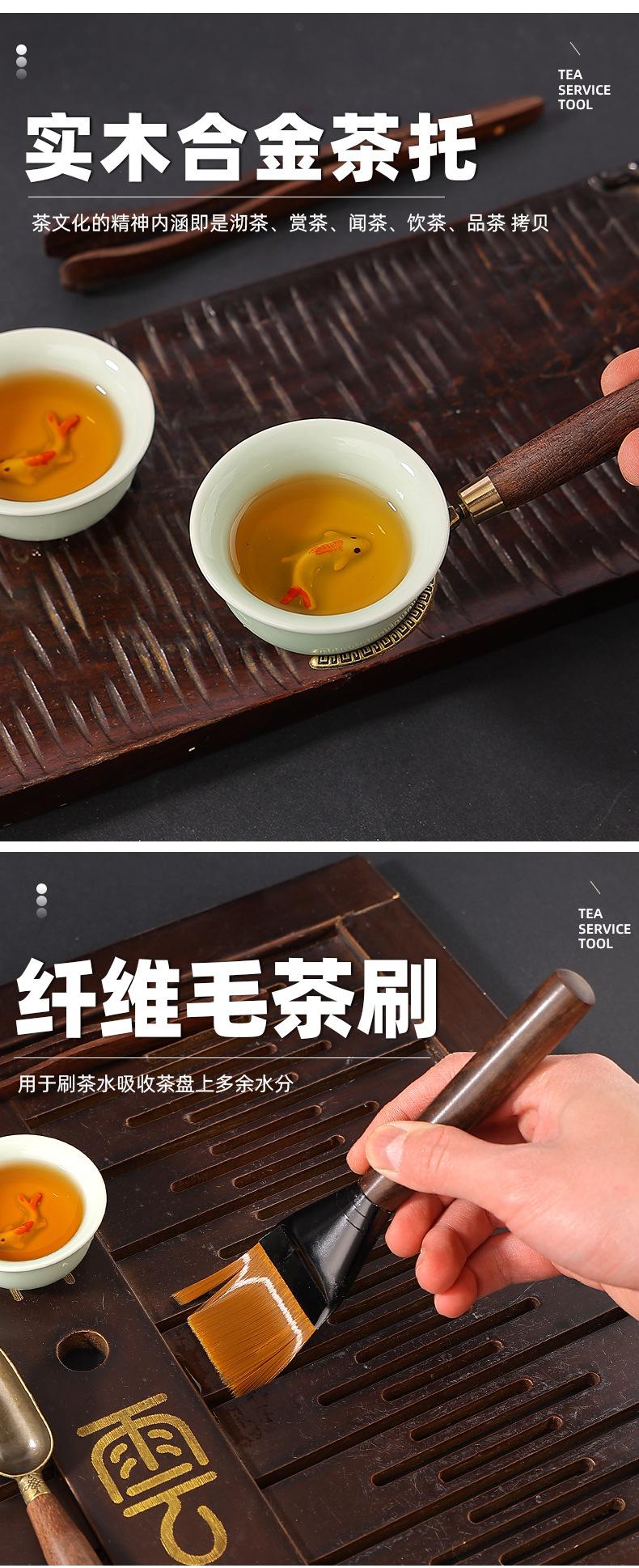 Five-piece set one: Tea Needle + saucer + woven tea spoon + tea clip + large electric Wood brush, Five-Piece S...