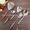 Colador de acero inoxidable 304 para cocina doméstica, cuchara para fideos, cuchara para albóndigas, cuchara para pimienta, cuchara para freír con filtro integrado de mango largo grueso