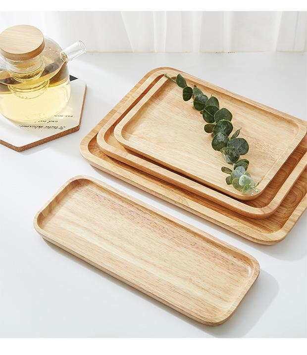 Bandeja Rectangular de Madera para Uso Doméstico, Plato de Madera Natural, Bandeja de Té, Plato de Madera, Plato de Empalme de Madera de Caucho, Acabado de Laca