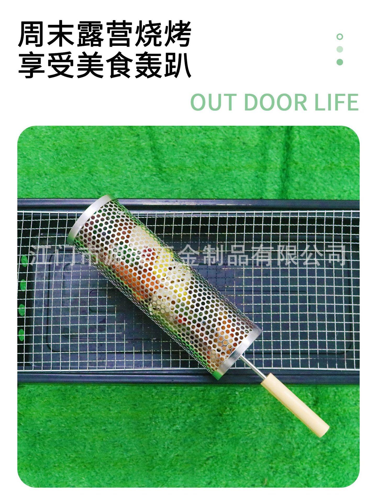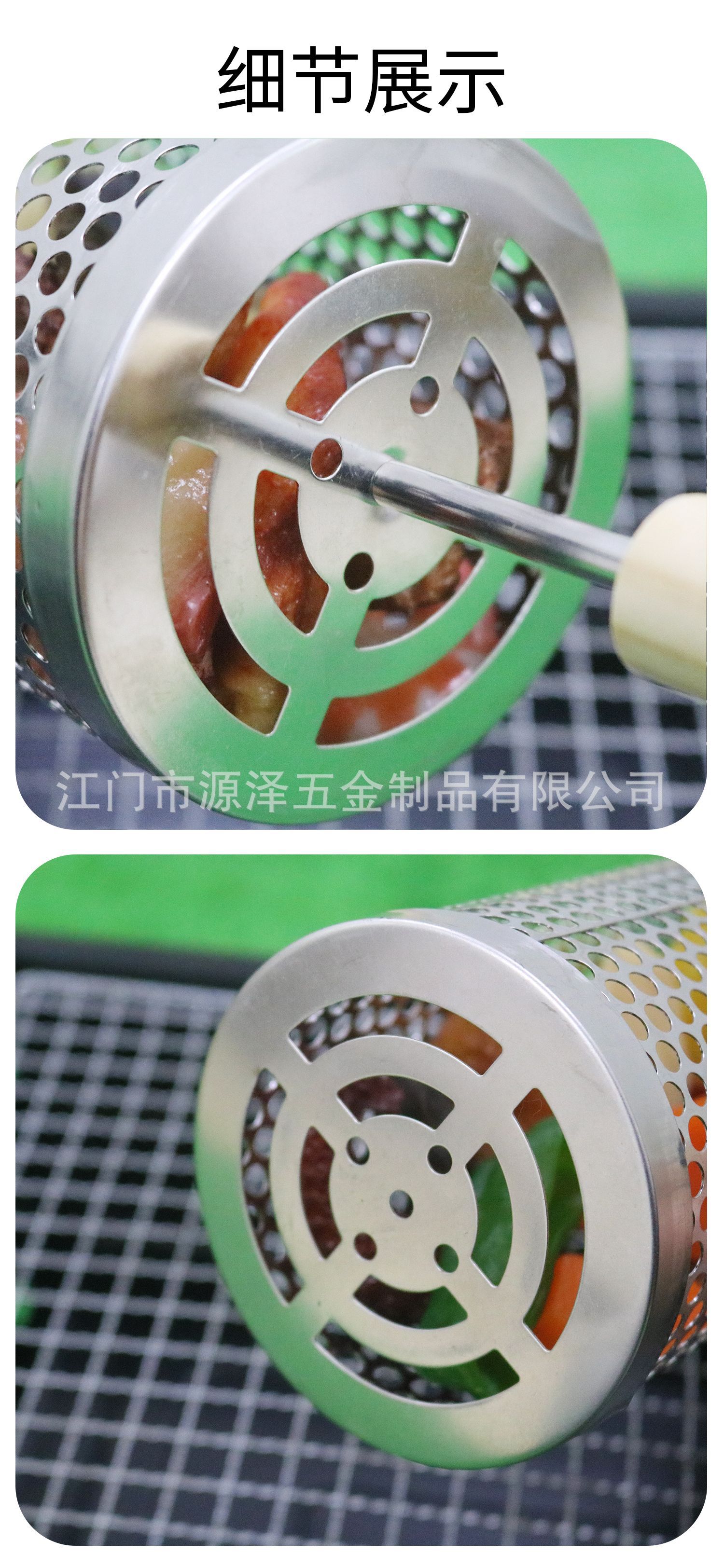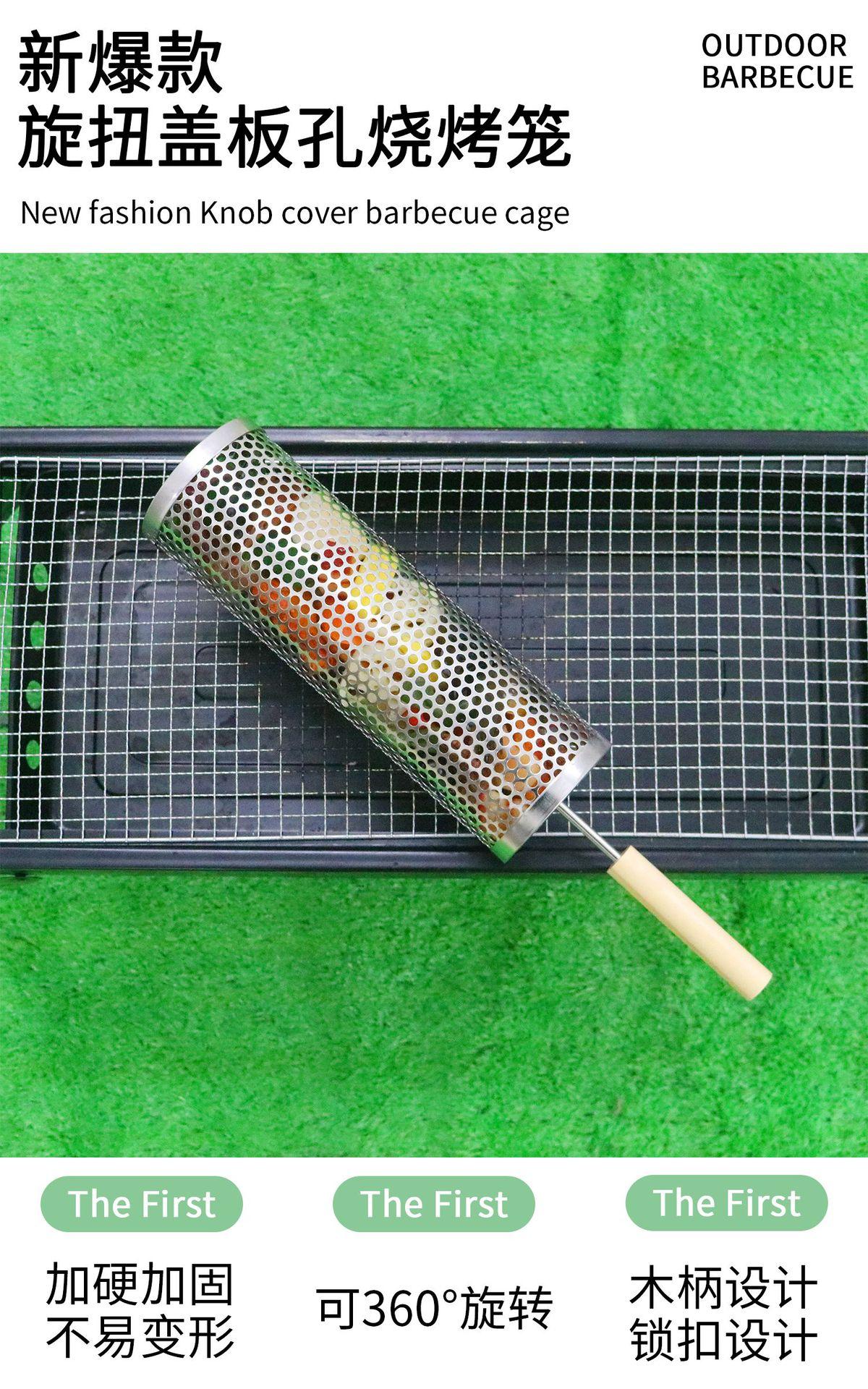Nueva jaula de barbacoa rodante transfronteriza, tubo de barbacoa redondo de acero inoxidable, parrilla de barbacoa para exteriores, cesta de barbacoa portátil, tubo de barbacoa