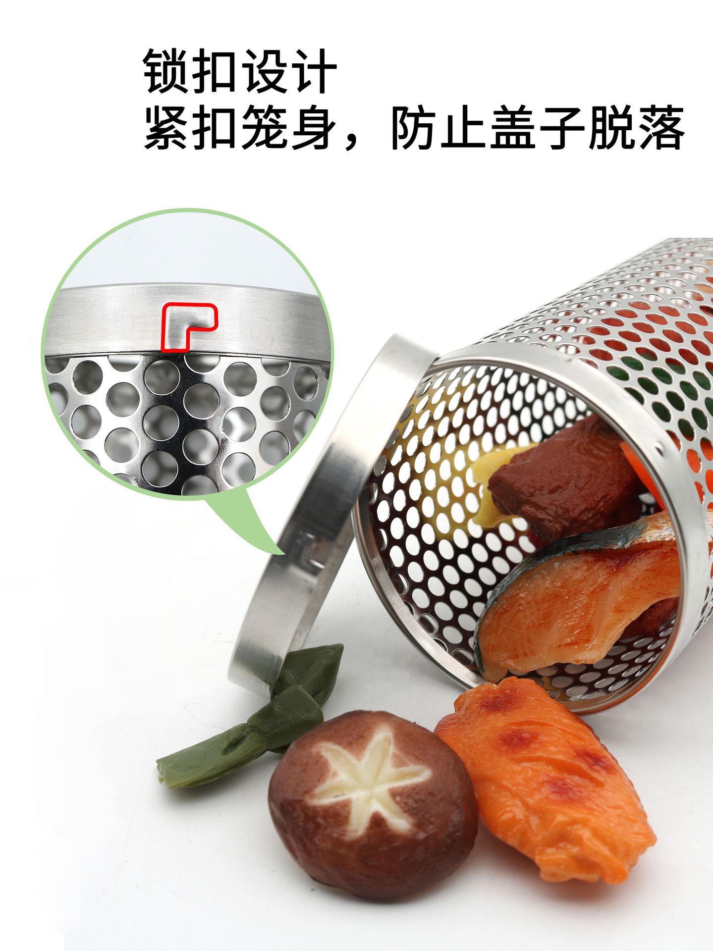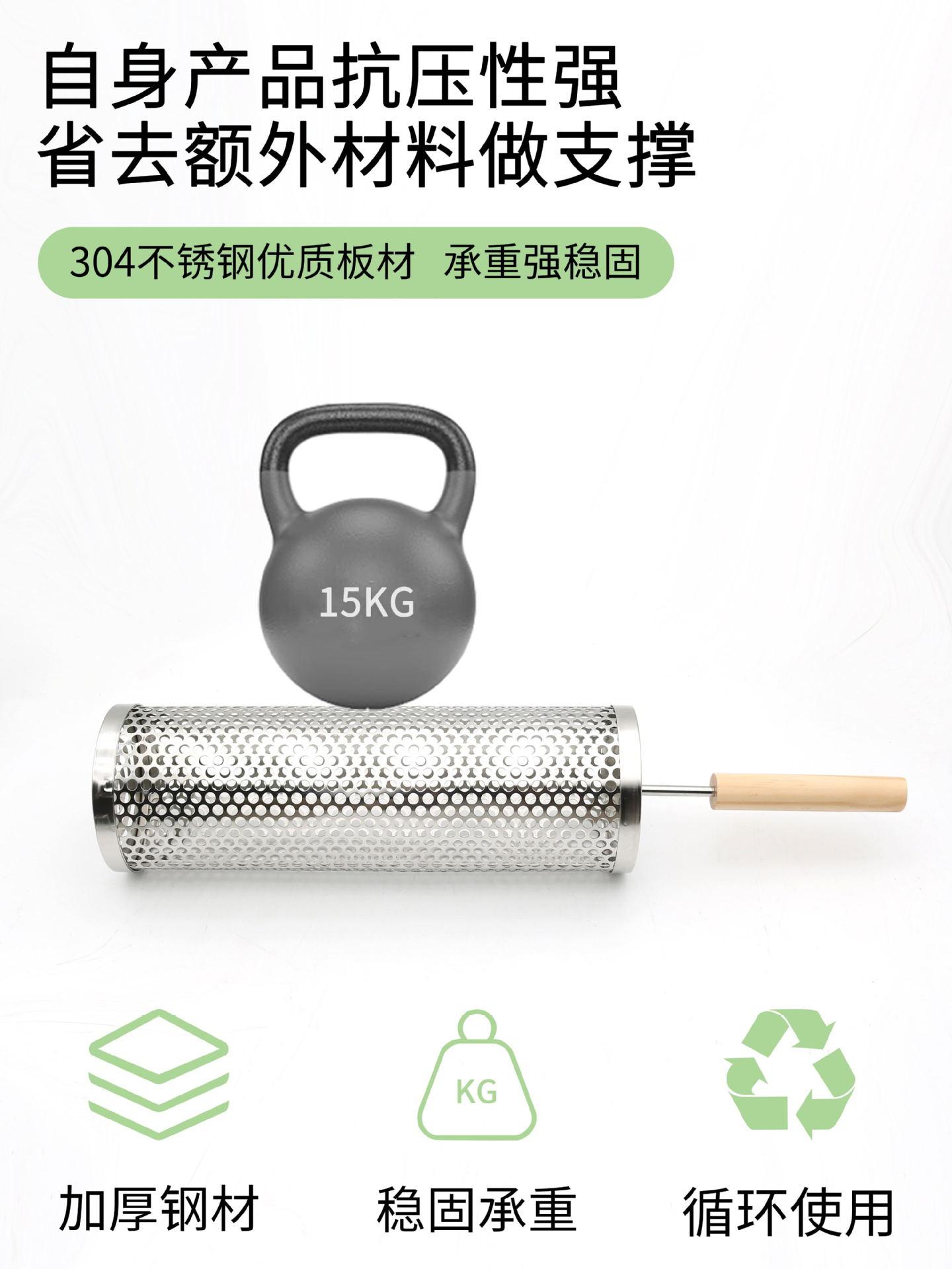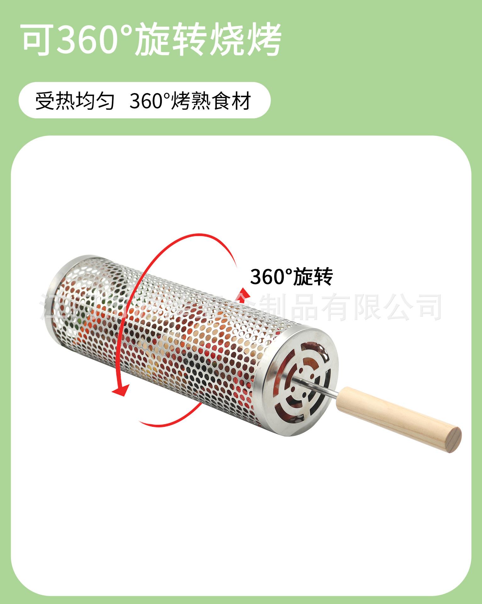 Nueva jaula de barbacoa rodante transfronteriza, tubo de barbacoa redondo de acero inoxidable, parrilla de barbacoa para exteriores, cesta de barbacoa portátil, tubo de barbacoa