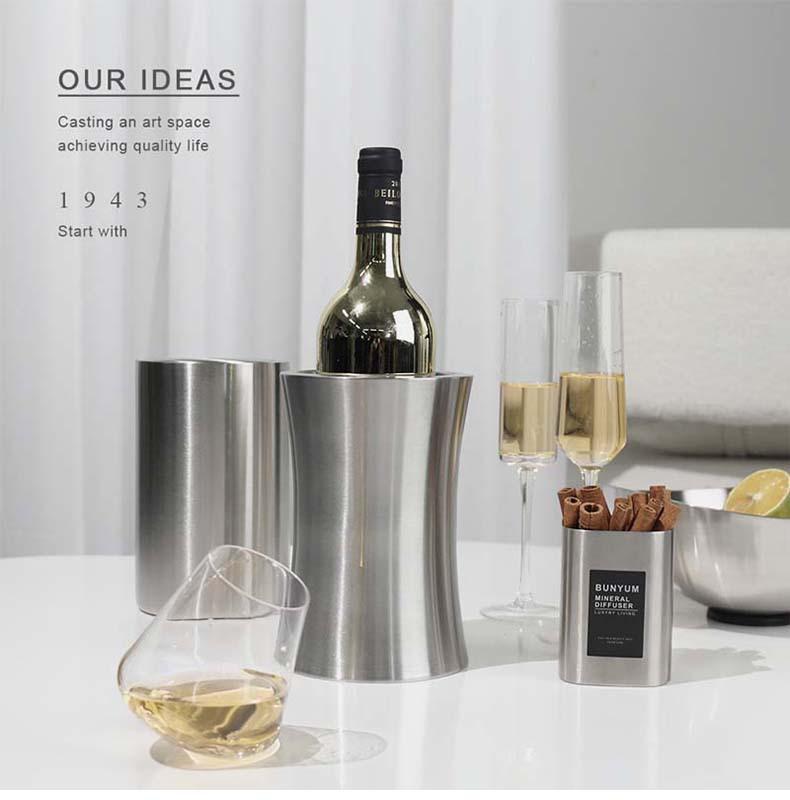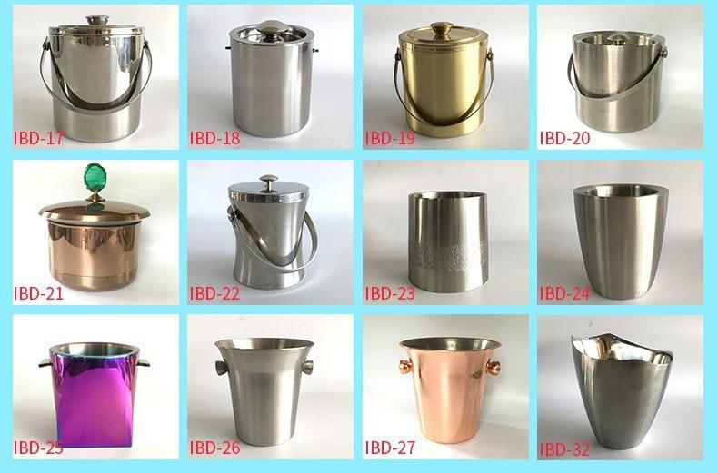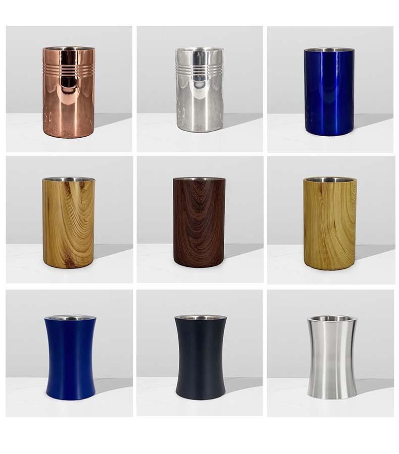 Cubo de hielo de acero inoxidable con aislamiento de doble capa, cubo de hielo recto y redondo, cubo de hielo para cerveza, champán, vino tinto, cubo de metal