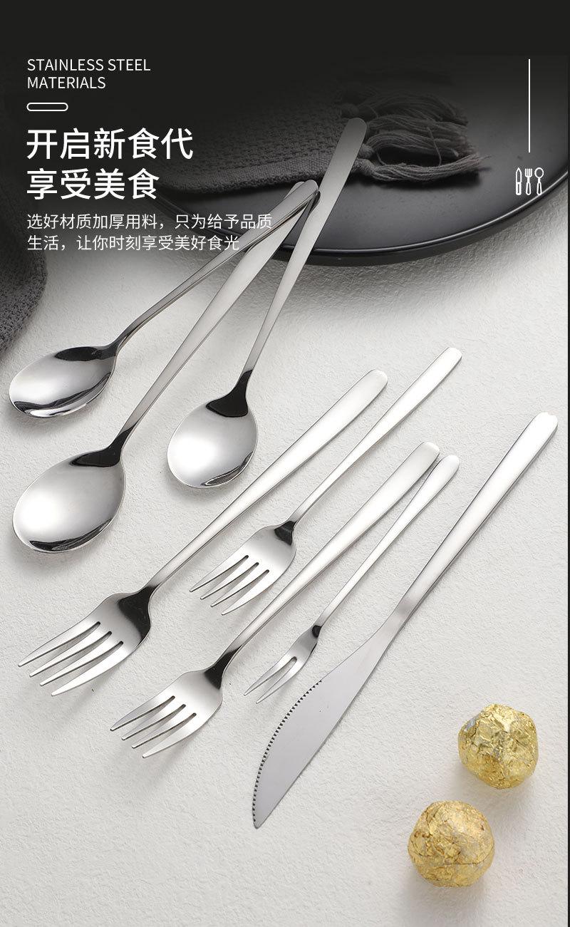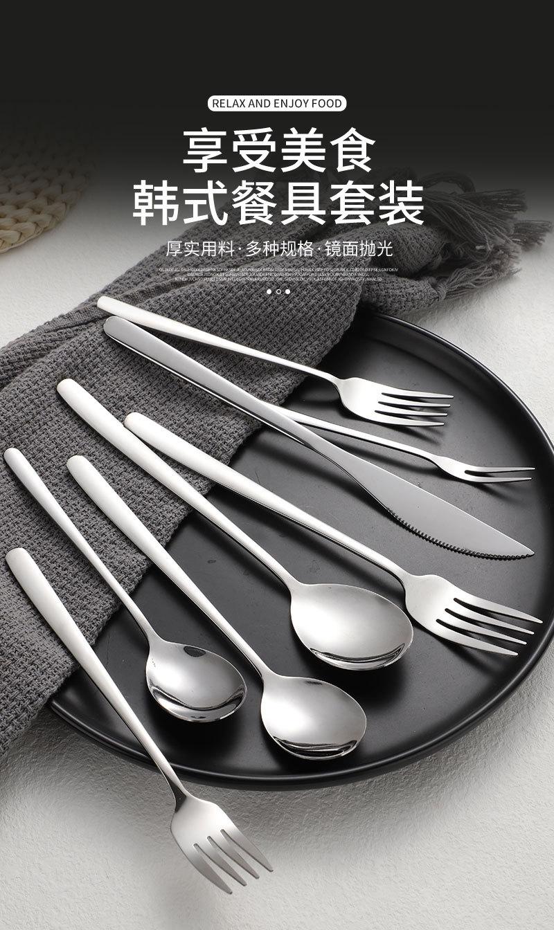 Cuchillo y tenedor para carne occidental de acero inoxidable 304 transfronterizo, cuchara de postre de mango largo, vajilla para el hogar, regalo, cuchillo, tenedor y cuchara coreanos