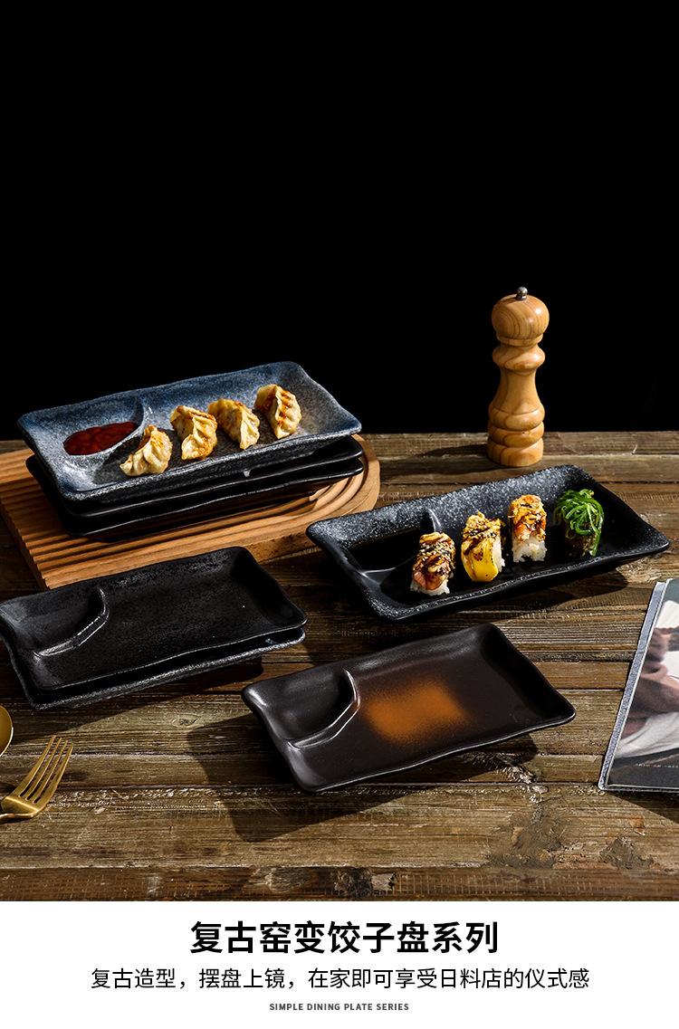 Plato de sushi, plato plano rectangular, vajilla de cerámica de estilo japonés, plato para dumplings domésticos, plato de rejilla, plato occidental creativo, plato de postre