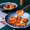 Juego de cuencos y platos retro, cuencos grandes, medianos y pequeños de formas especiales, vajilla de cerámica japonesa transformada en horno, plato creativo para carne de hotel, venta al por mayor