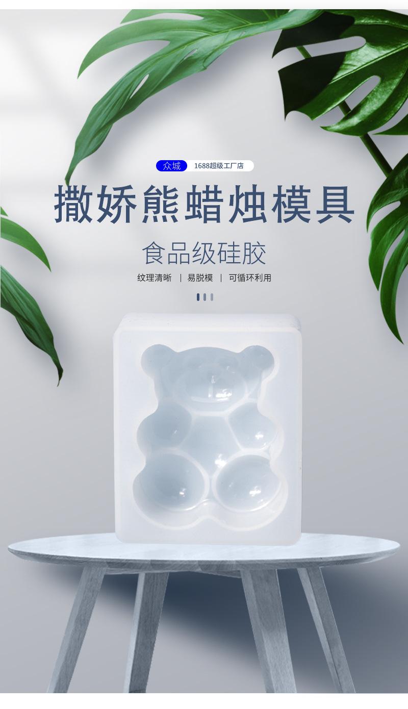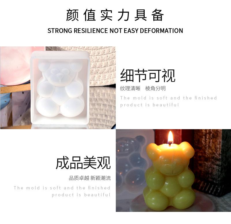 Molde de silicona para velas de oso con espejo 3D estéreo con forma de gota de pegamento de cristal de Zhongcheng, molde de expansión de yeso para aromaterapia, adornos suaves