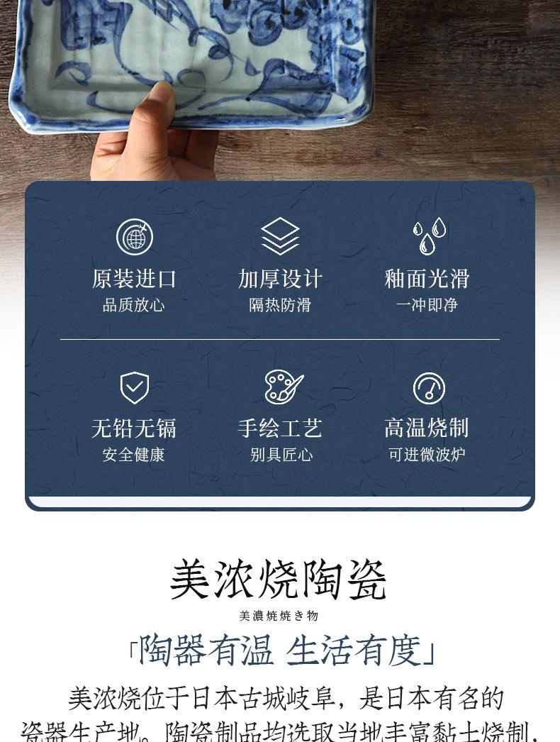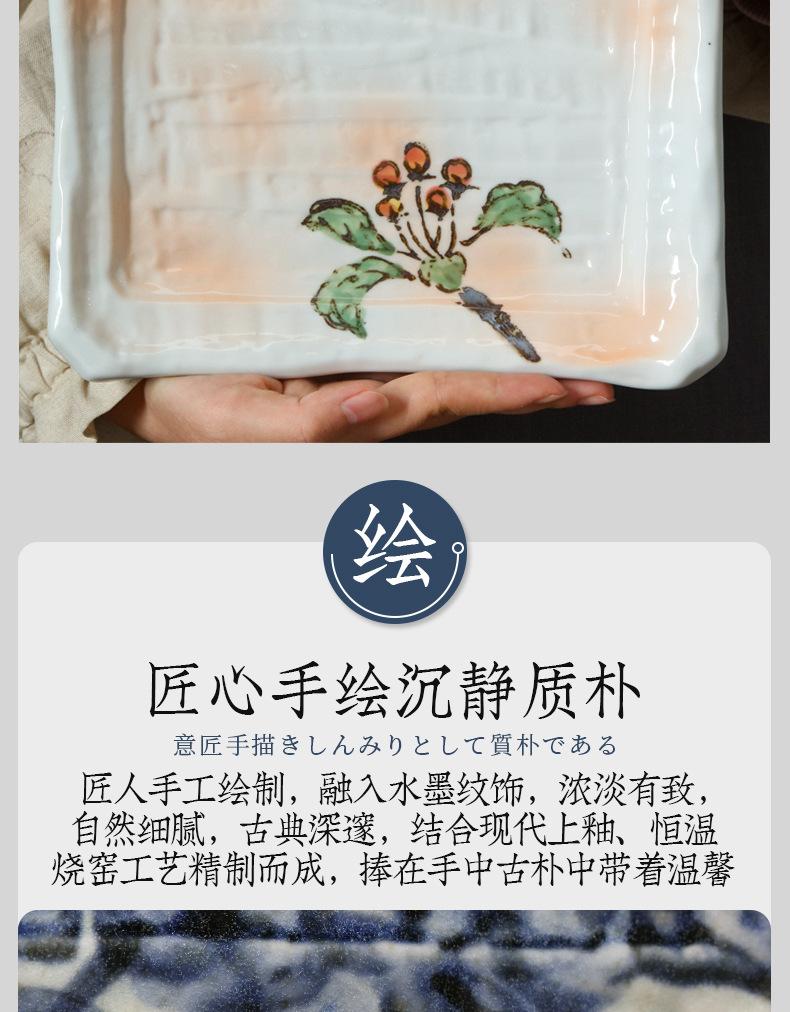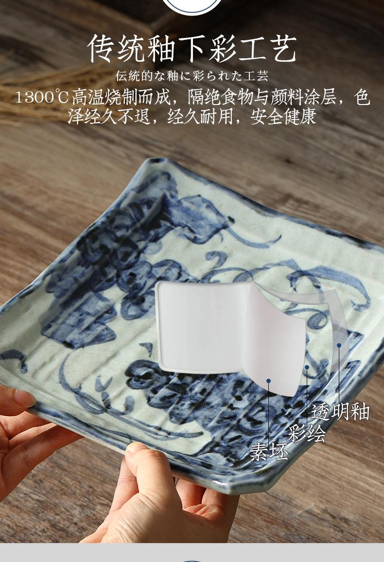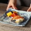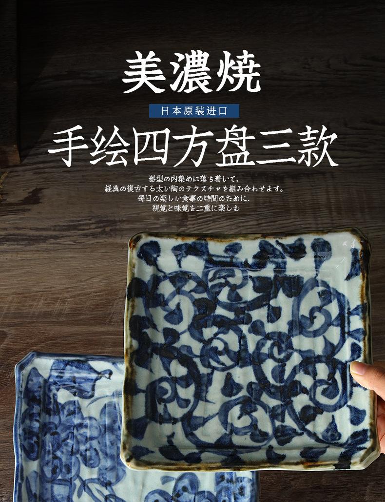 [Juego de 2 piezas] Plato de cena de cerámica estofada importada de Japón, plato de sushi, plato plano cuadrado con uva pintado a mano, en caja de regalo